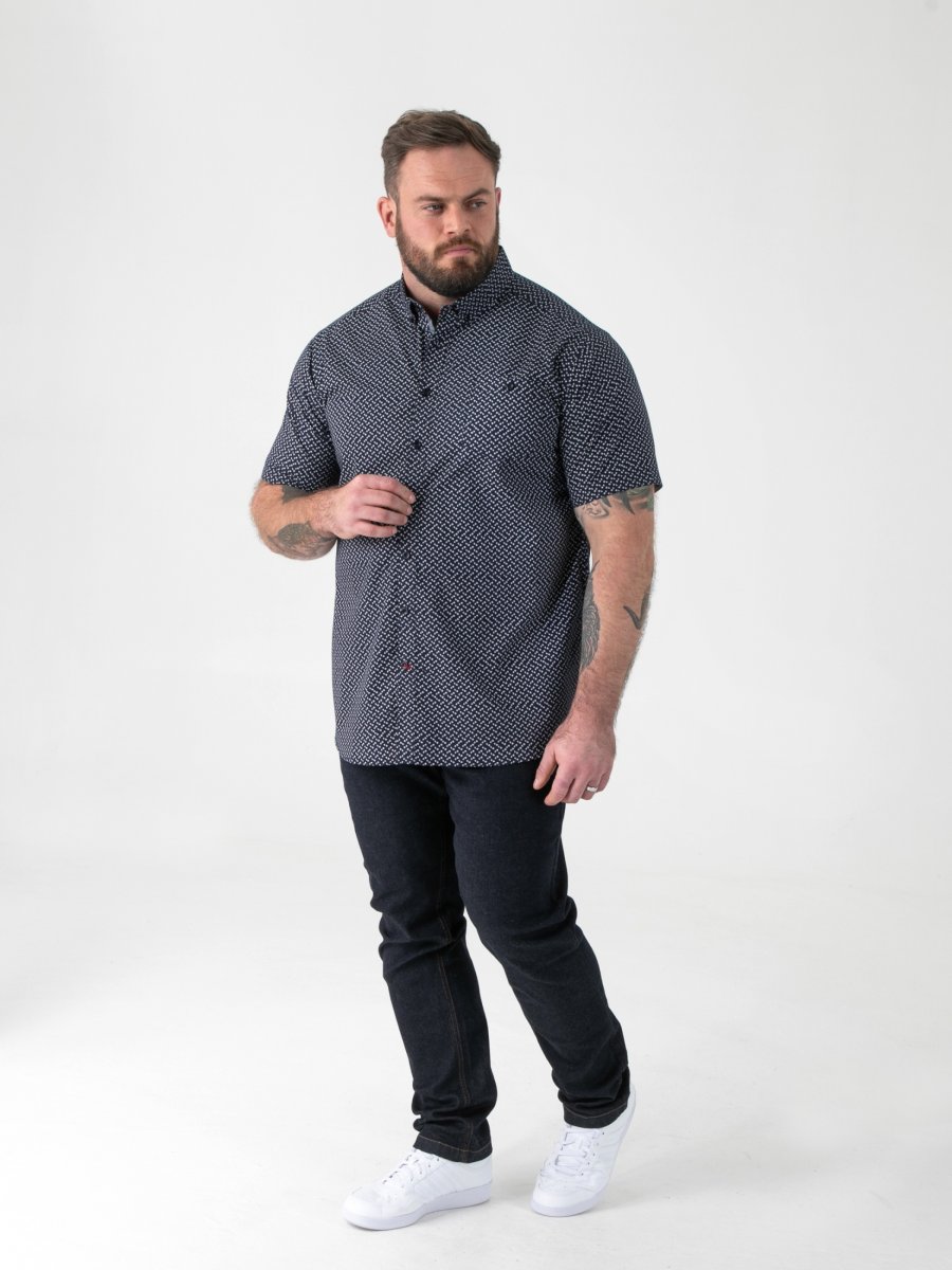 Dydžių vadovas - D555 Melrose Navy Icon AOP Button Down Collar Short Sleeve Navy
