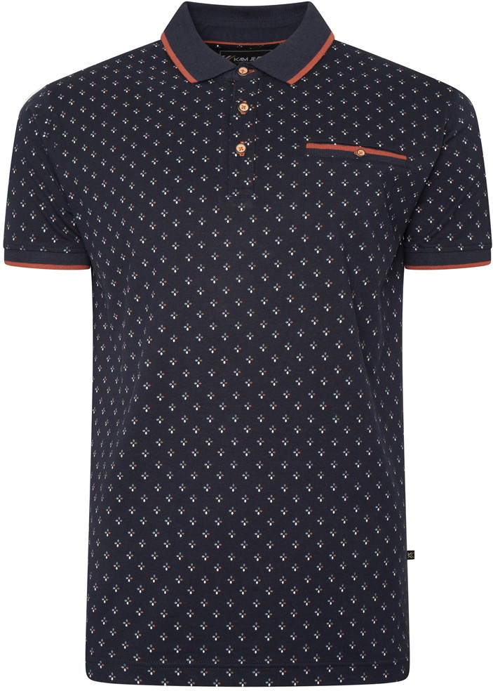 Dydžių vadovas - Kam Jeans 5503 Jersey Polo with All Over Geo Print Navy
