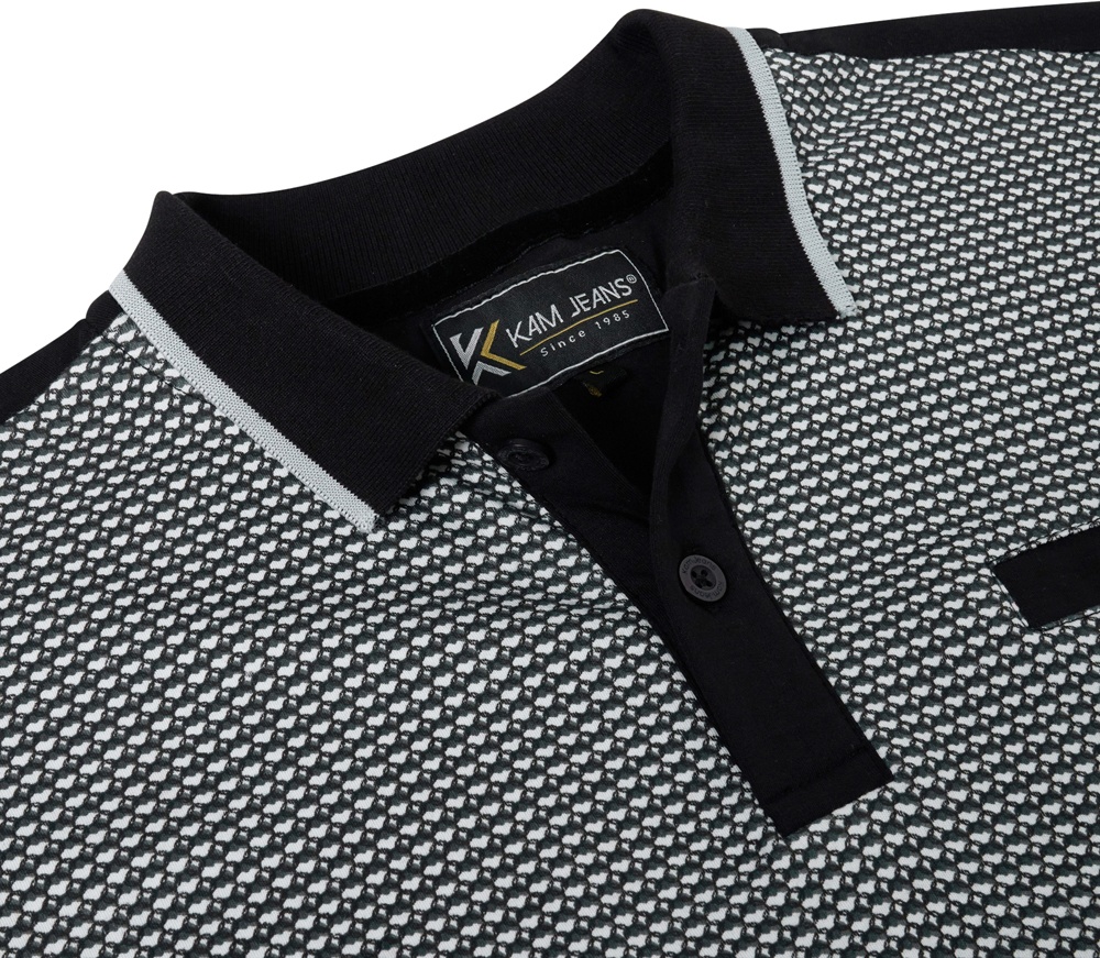 Dydžių vadovas - Kam Jeans 5518 Smart Mini Geo-Print Polo Black