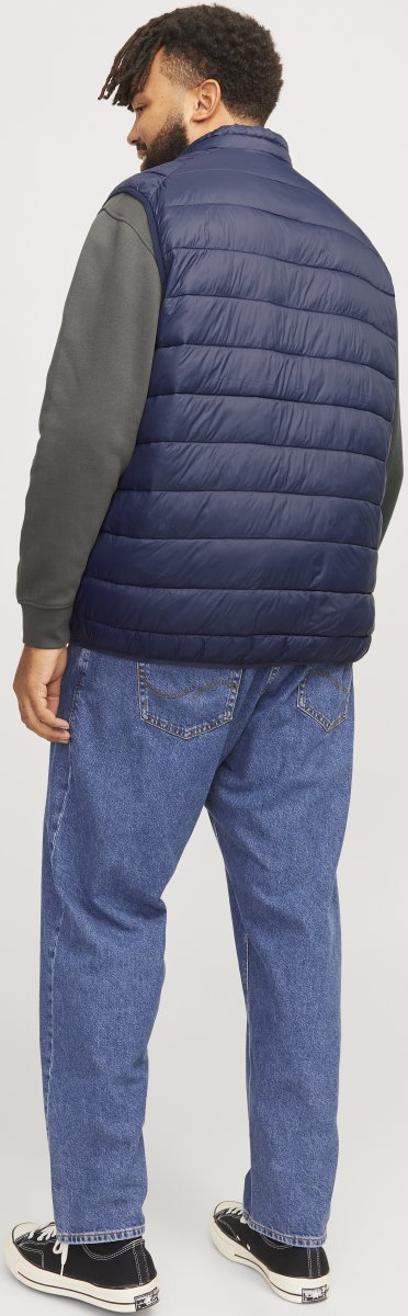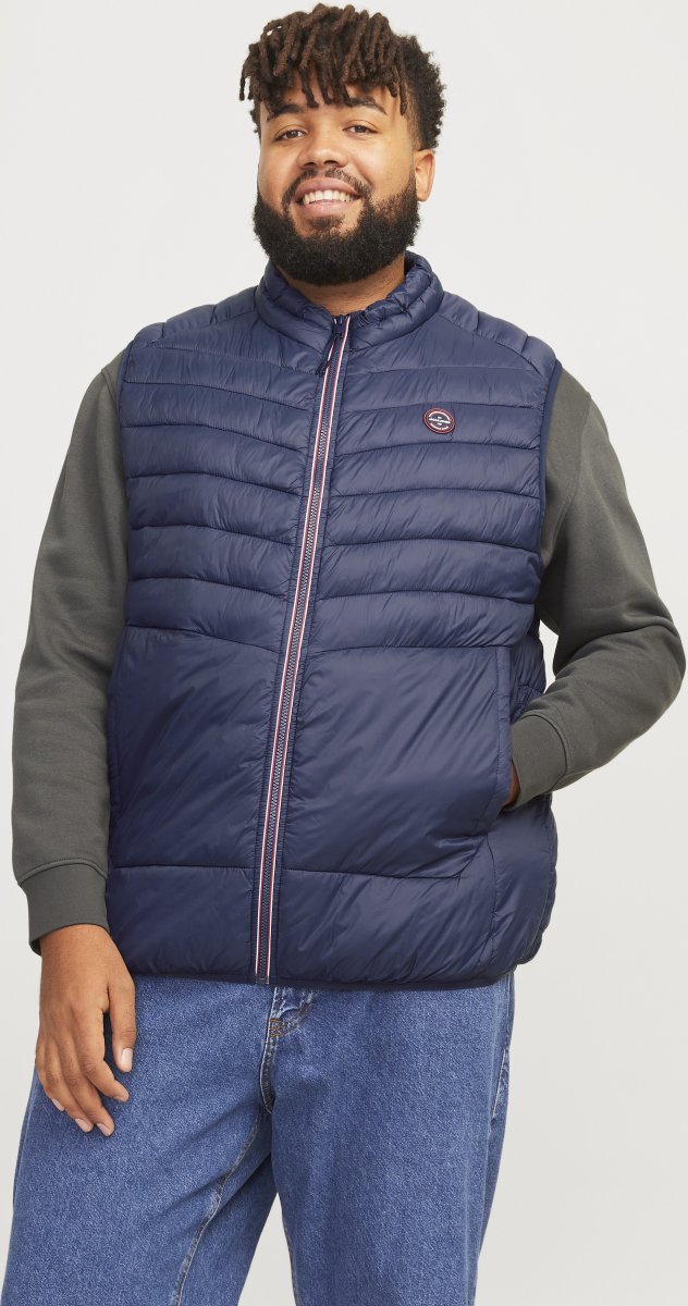 Dydžių vadovas - Jack & Jones SPRINT True Red Stitches BODYWARMER Navy Blazer