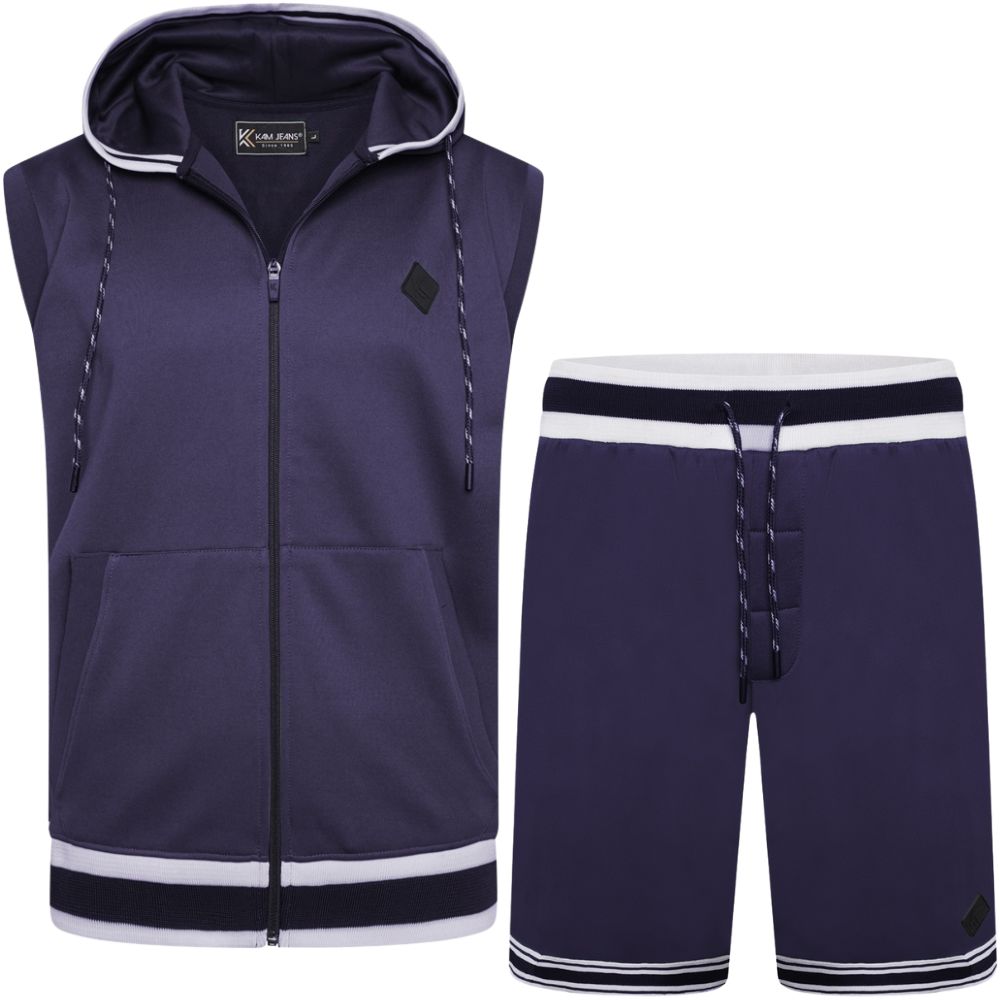 Dydžių vadovas - Kam Jeans TS005 Retro Tracky Set (Shorts/Sleeveless Hoodie) Navy