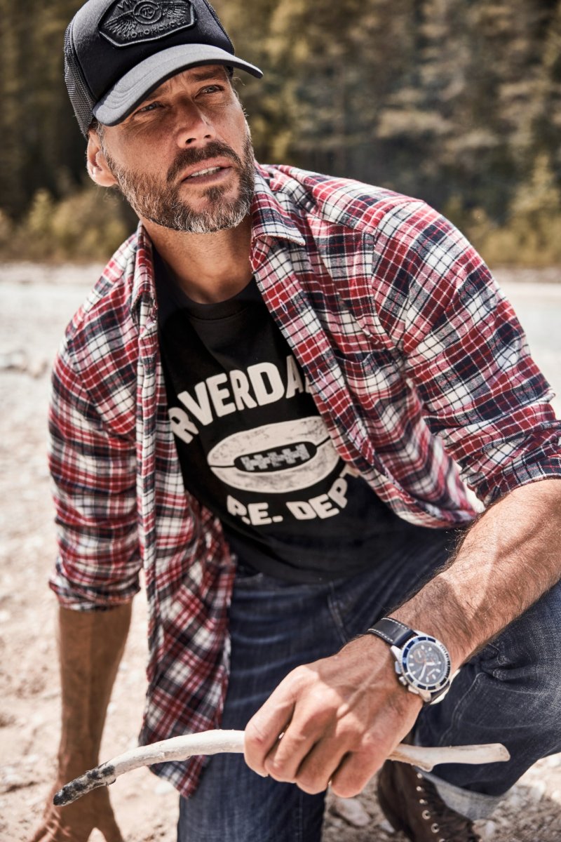 Dydžių vadovas - JP1880 Shirt Flannel Checked Long Sleeve Red TALL