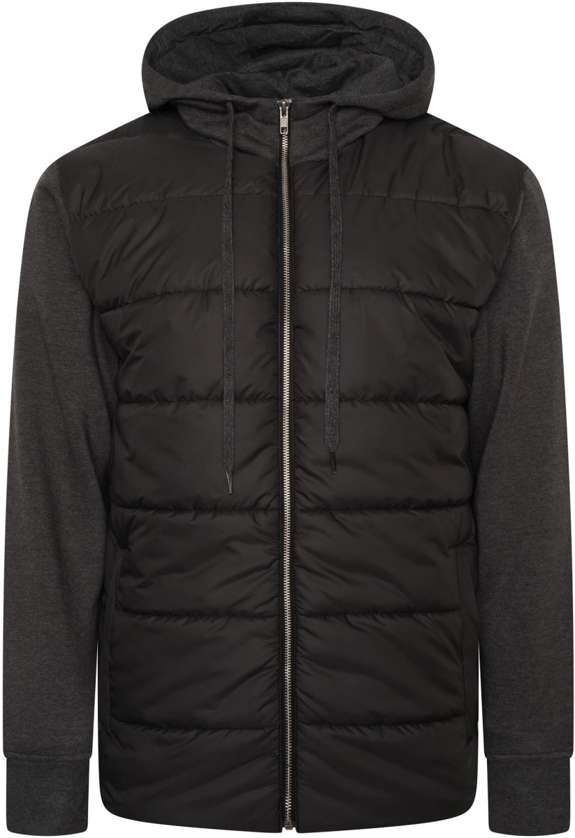 Dydžių vadovas - Kam Jeans KV135 Quilted Zip Thru Hoody with Padded Body & Jersey Sleeves Black TALL SIZES