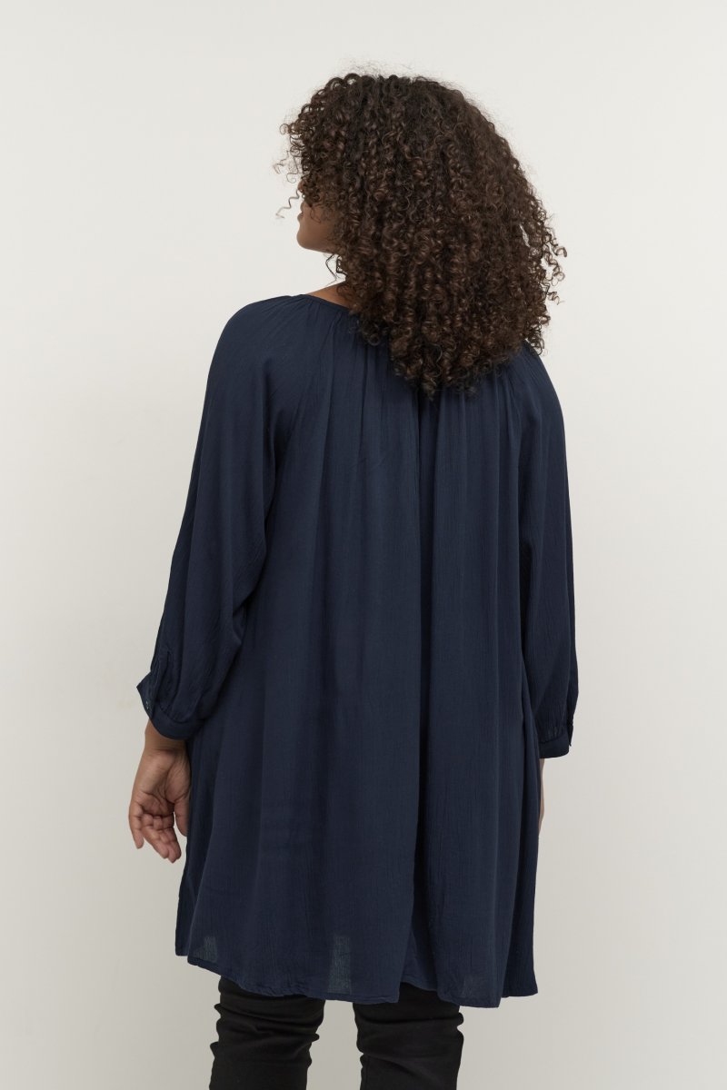 TunikaGalimi dydžiai 42–56Iš prekės ženklo Kaffe CurvePagaminta iš 100% viskozės (LENZING™ ECOVERO™)Įprastas kirpimasGalimos spalvos: tamsiai mėlynaSpustelėkite čia, norėdami pamatyti dydžių vadovą