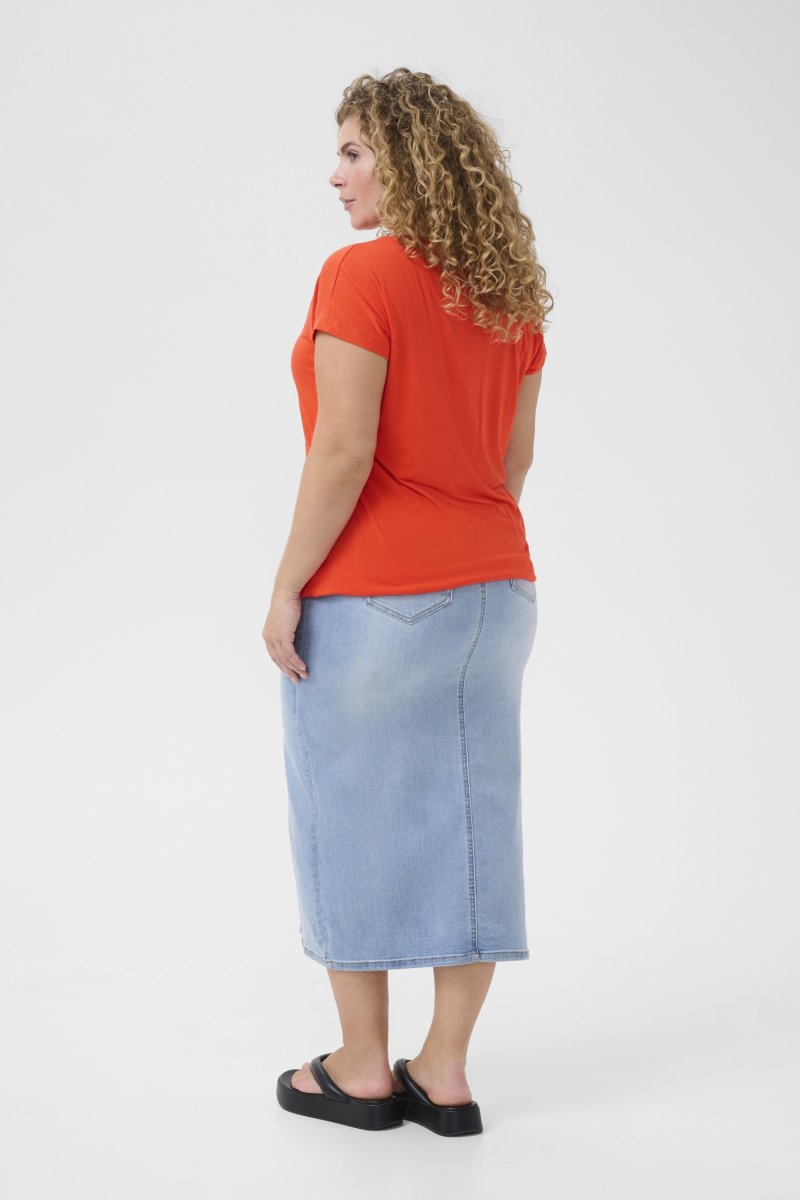 MarškinėliaiGalimi dydžiai S–XLIš prekės ženklo Kaffe CurvePagaminta iš 95% viskozės ir 5% elastanoLaisvo kirpimoGalimos spalvos: raudonaSpustelėkite čia, norėdami pamatyti dydžių vadovą