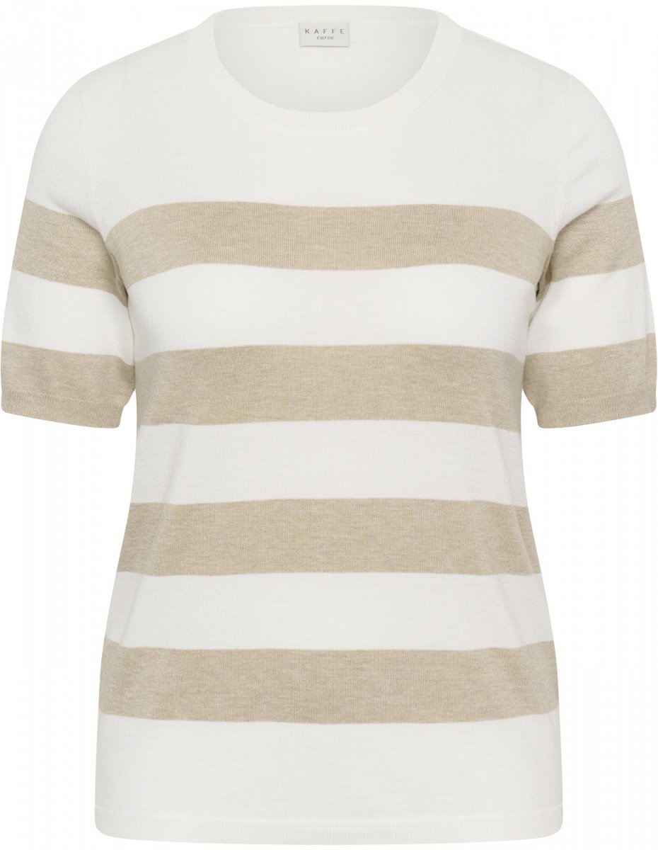 Dydžių vadovas - Kaffe Curve Lizzy Striped Pullover Chalk/Feather Grey Bold Stripe