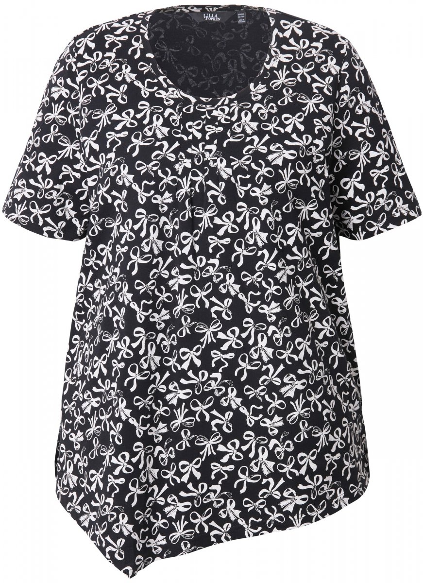 Dydžių vadovas - Ulla Popken Bow Print Short Sleeve Pointed Hem Tee Black