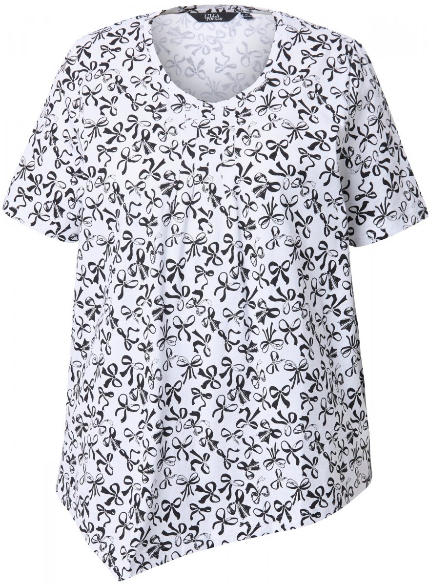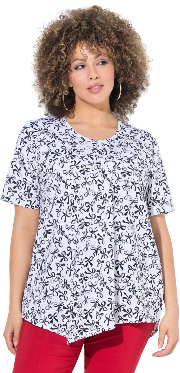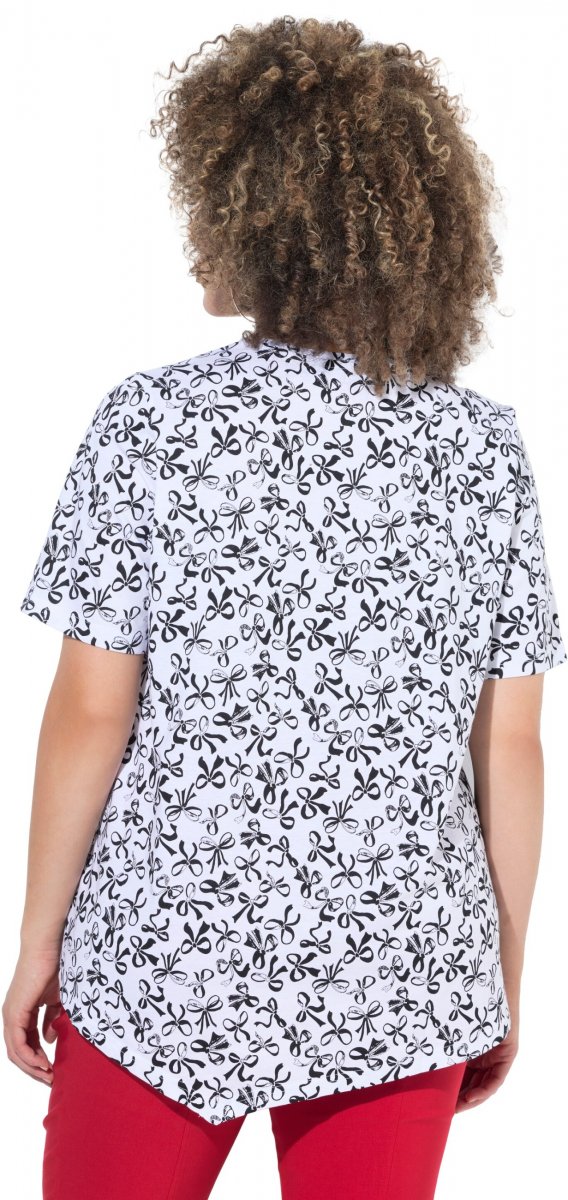 Dydžių vadovas - Ulla Popken Bow Print Short Sleeve Pointed Hem Tee Snow White