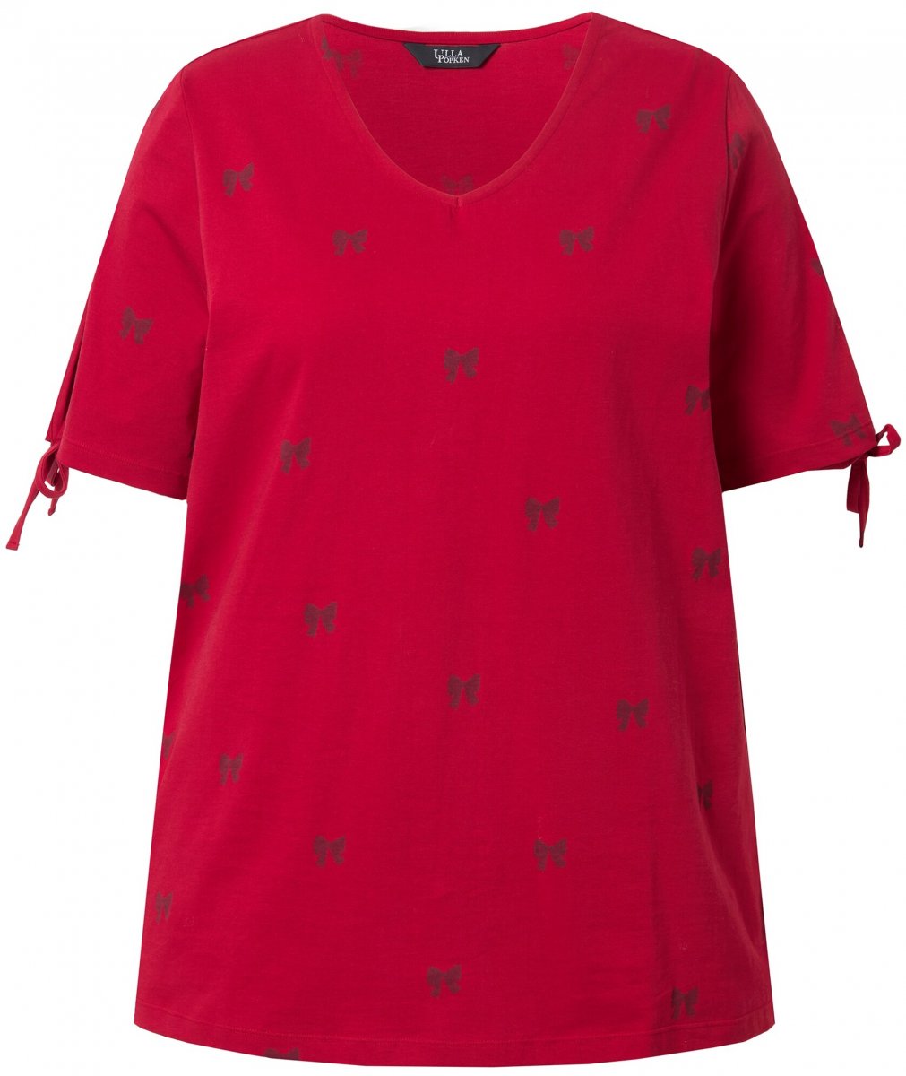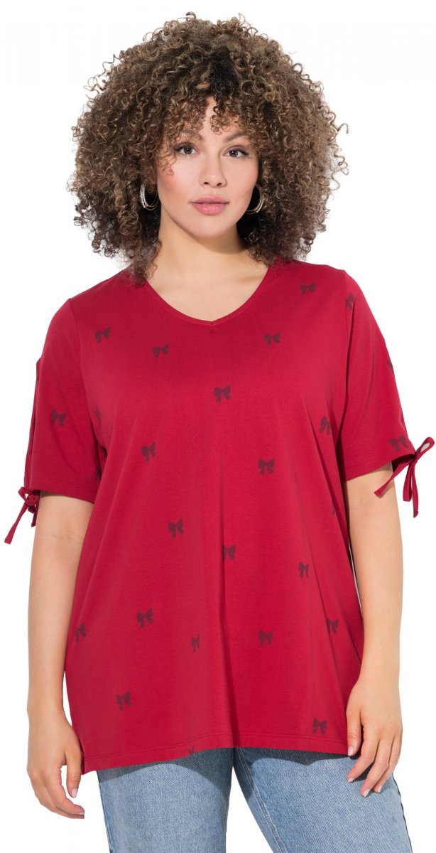 Dydžių vadovas - Ulla Popken Bow Print Split Sleeve Tee Ruby Red
