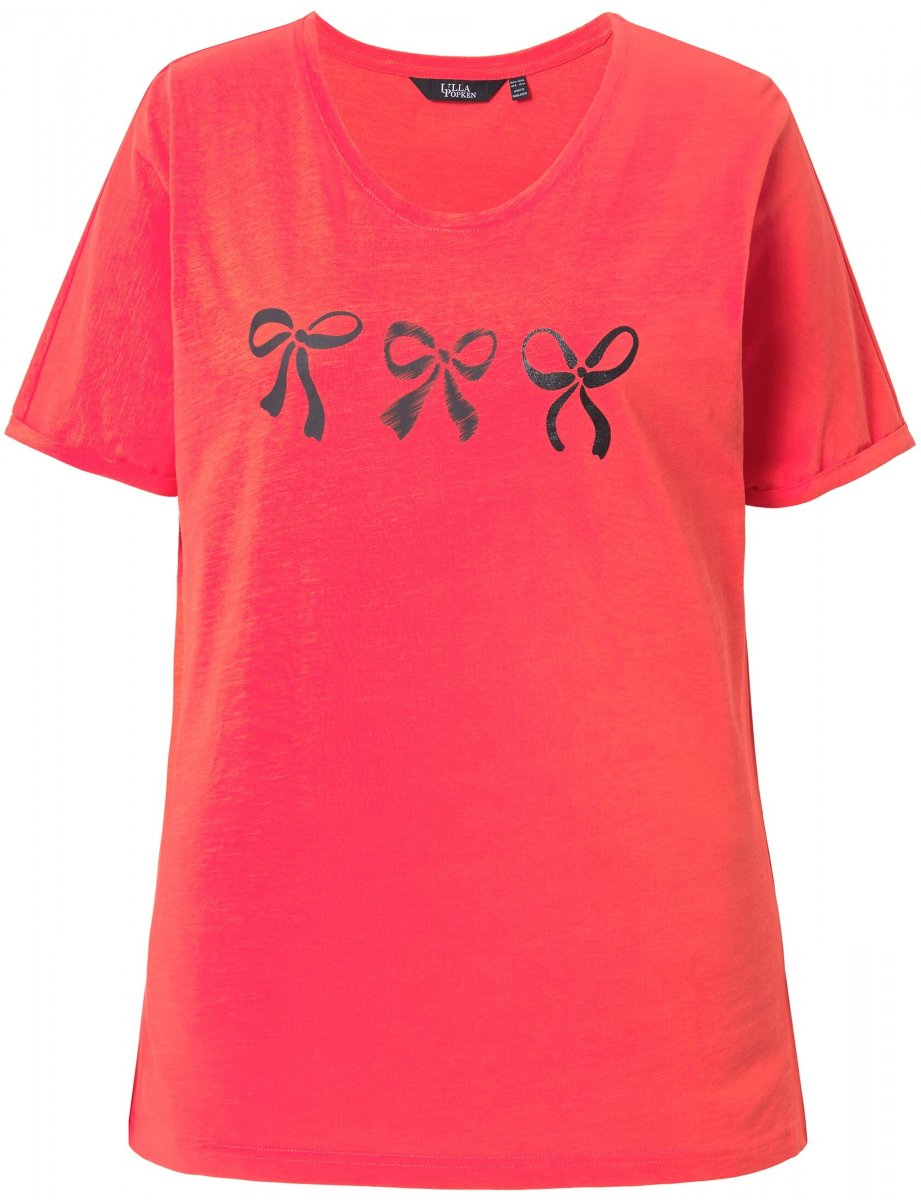 Dydžių vadovas - Ulla Popken Bow Short Sleeve Graphic Tee Light Red