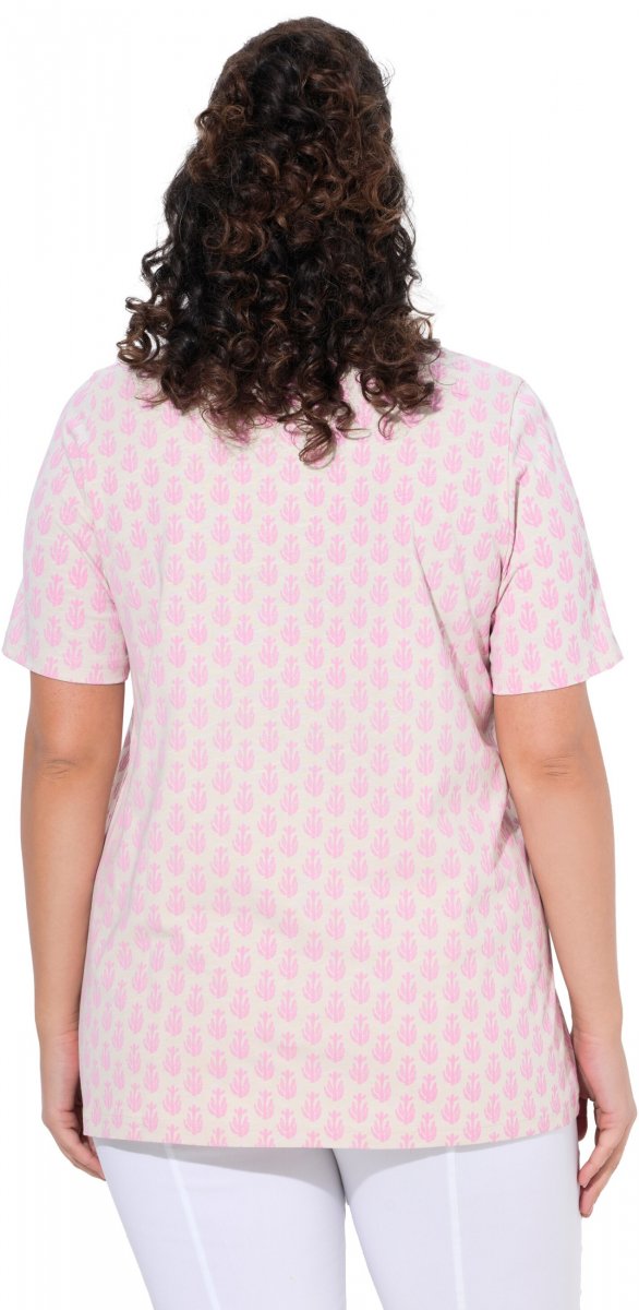Dydžių vadovas - Ulla Popken Cactus Print Short Sleeve V-Neck Tee Pink