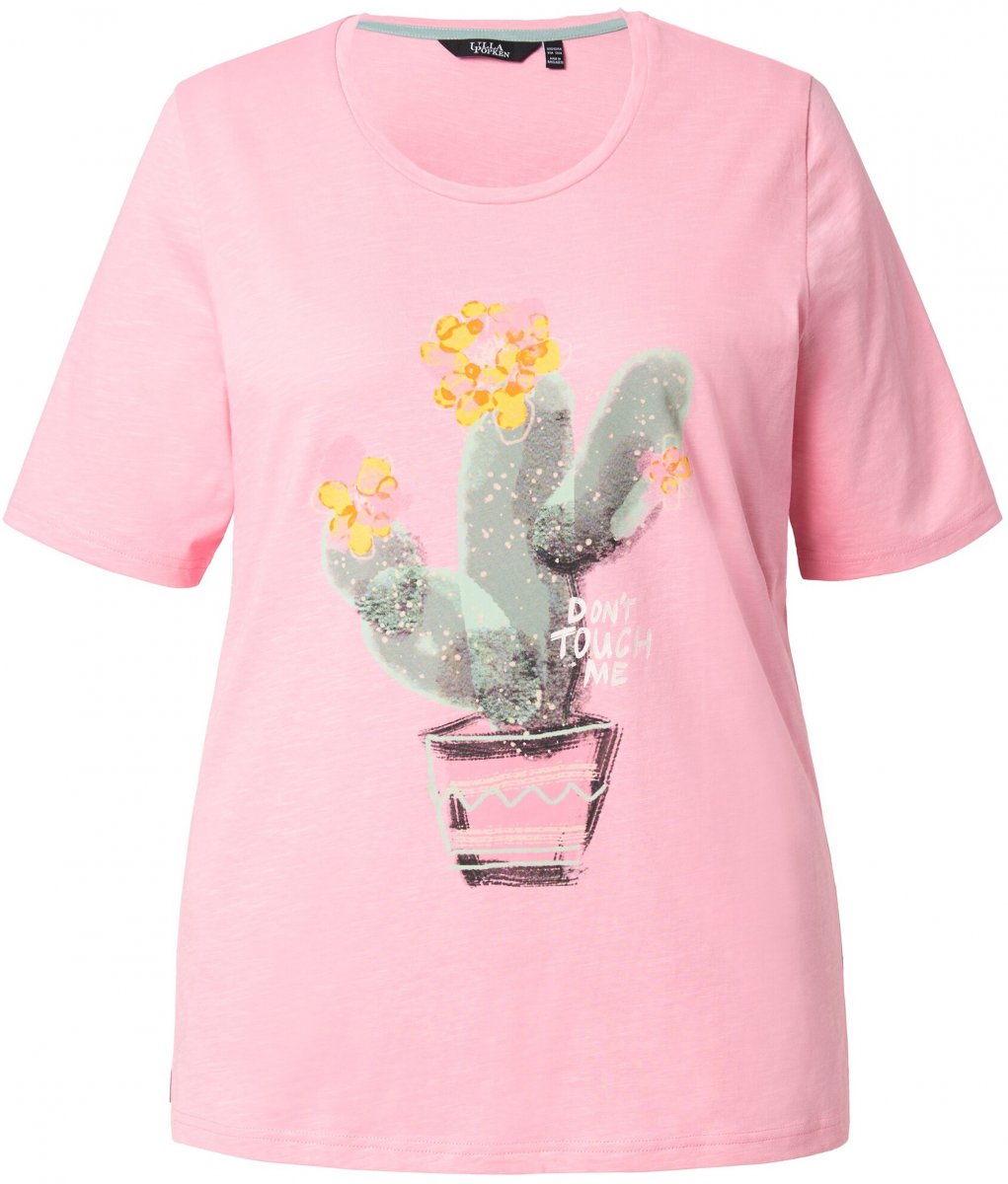 Dydžių vadovas - Ulla Popken Cactus Short Sleeve Graphic Tee Pink