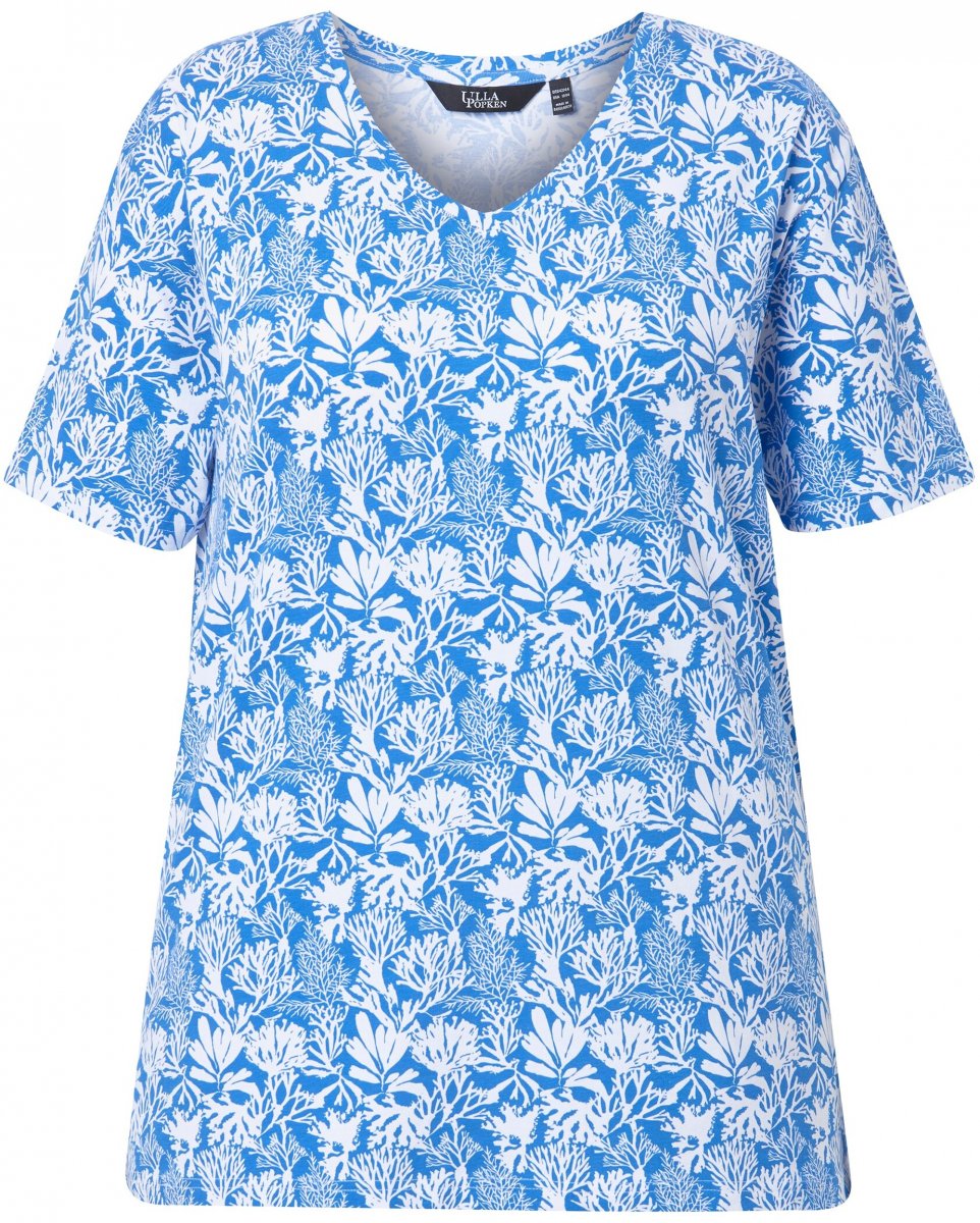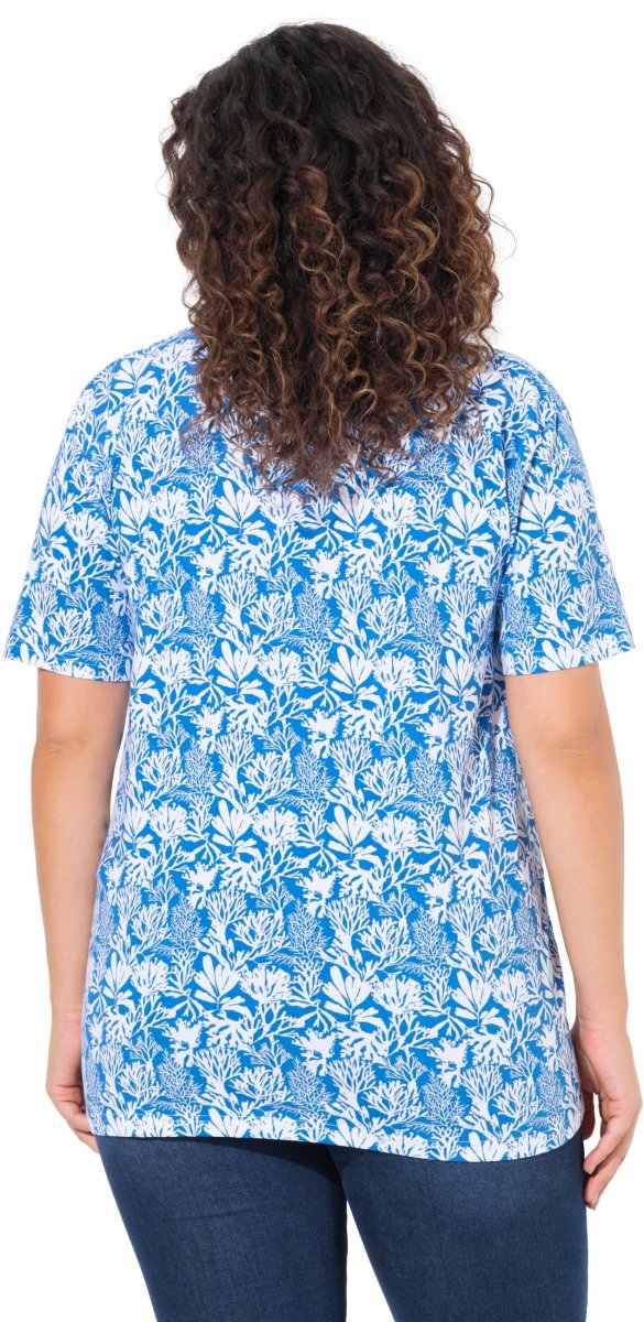 Dydžių vadovas - Ulla Popken Coral Reef Printed Short Sleeve V-Neck Tee Teal Blue