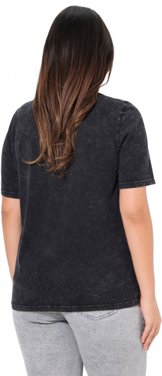 Ulla Popken Easy Short Sleeve Acid Wash Graphic Tee Black