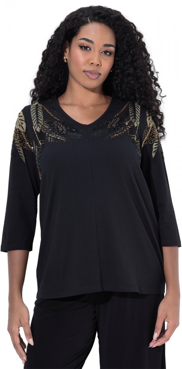 Dydžių vadovas - Ulla Popken Feather Beadwork 3/4 Sleeve Top Black