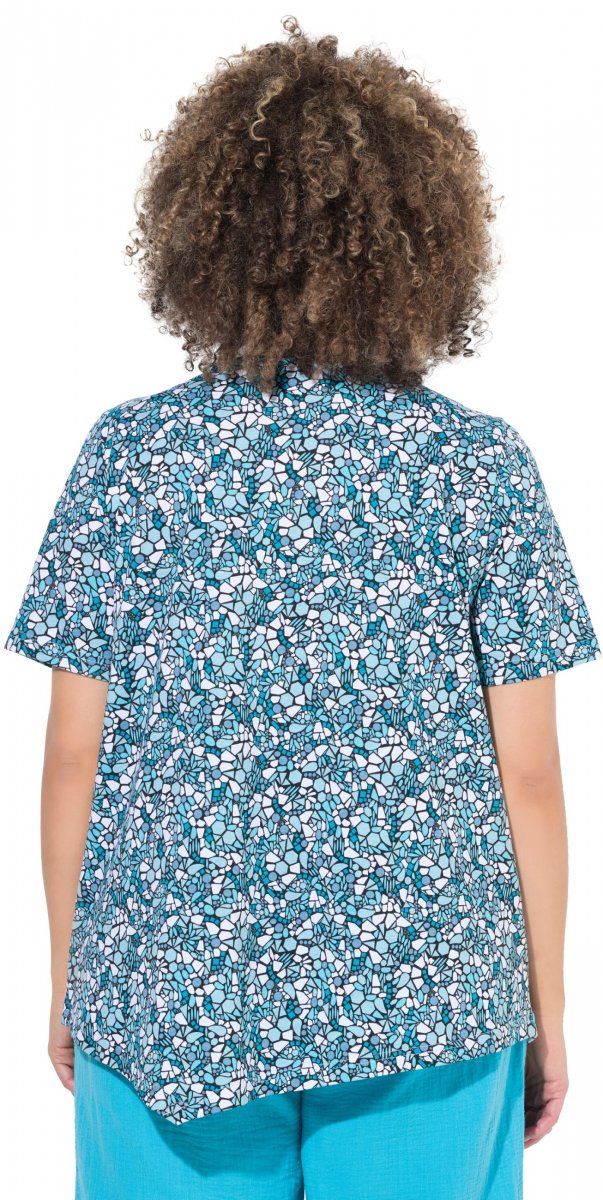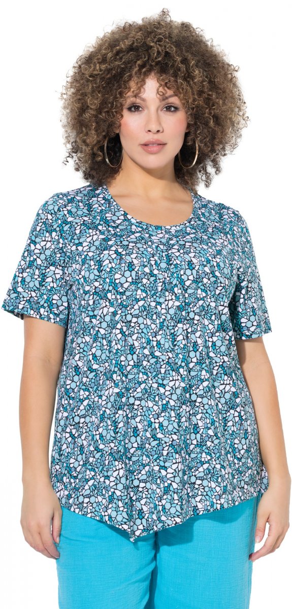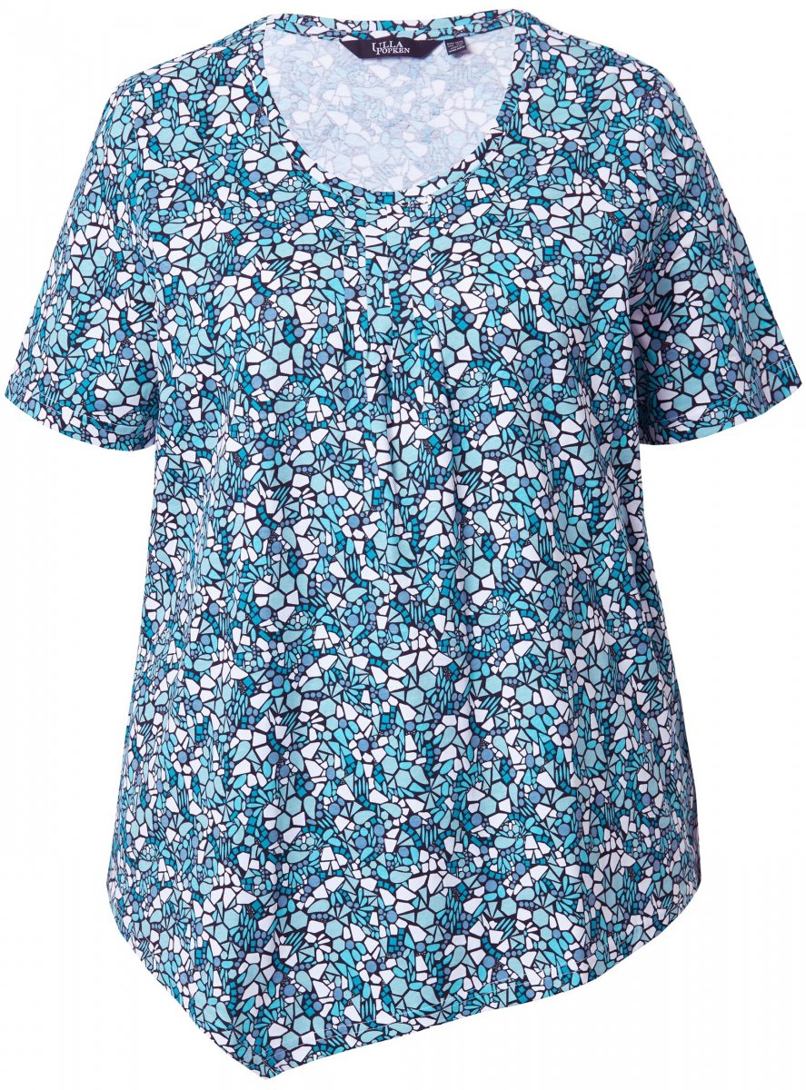 Ulla Popken Floral Pointed Hem Short Sleeve Tee Deep Aqua