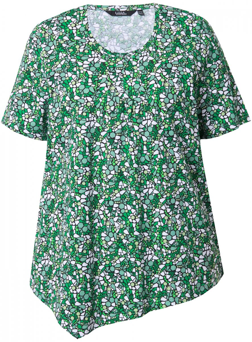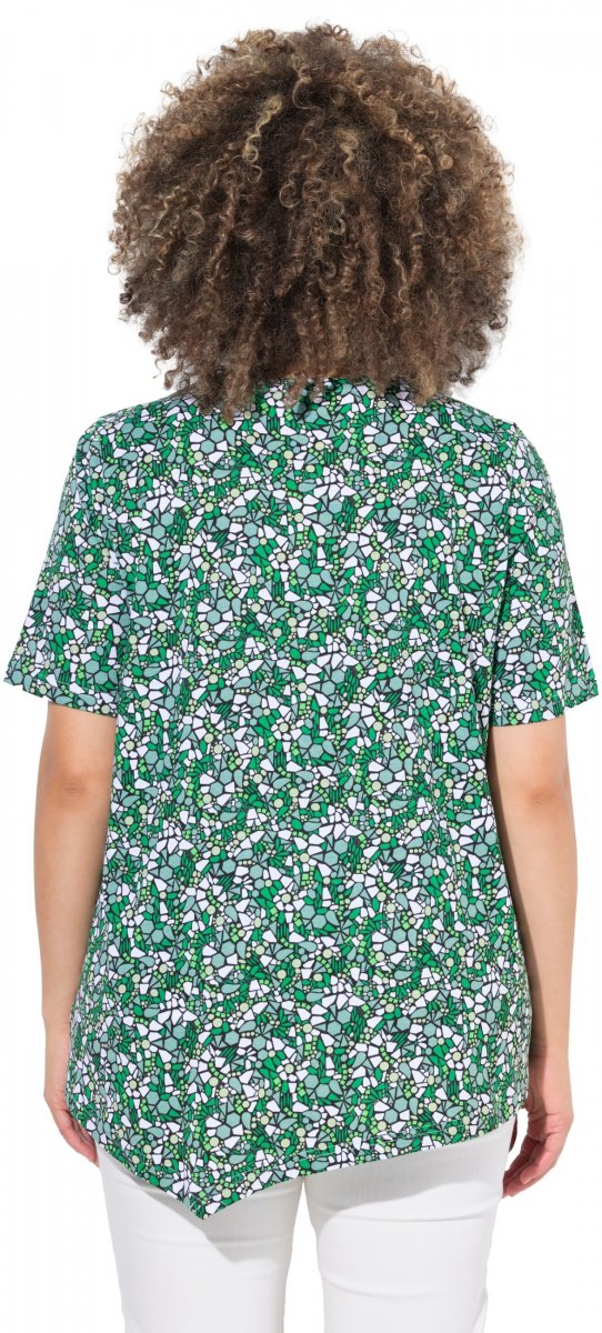 Dydžių vadovas - Ulla Popken Floral Pointed Hem Short Sleeve Tee Green