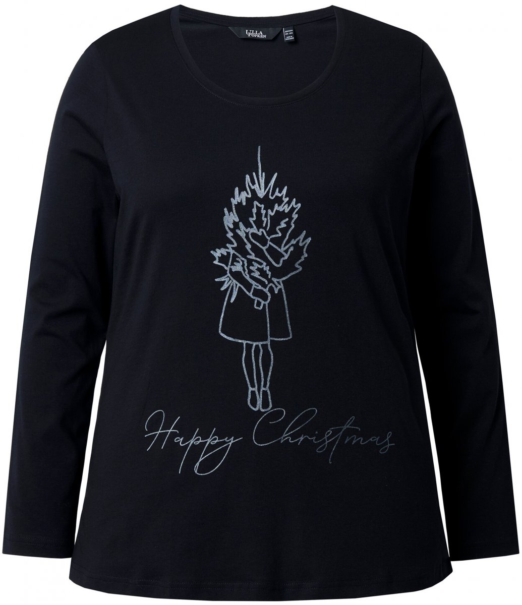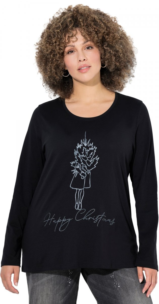 Dydžių vadovas - Ulla Popken Holiday Long Sleeve Graphic Tee Black