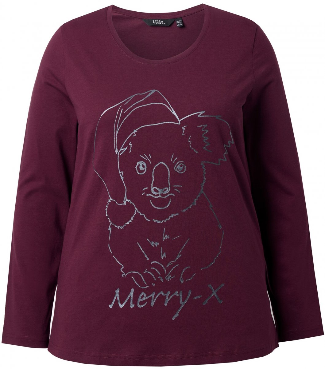 Dydžių vadovas - Ulla Popken Holiday Long Sleeve Graphic Tee Plum
