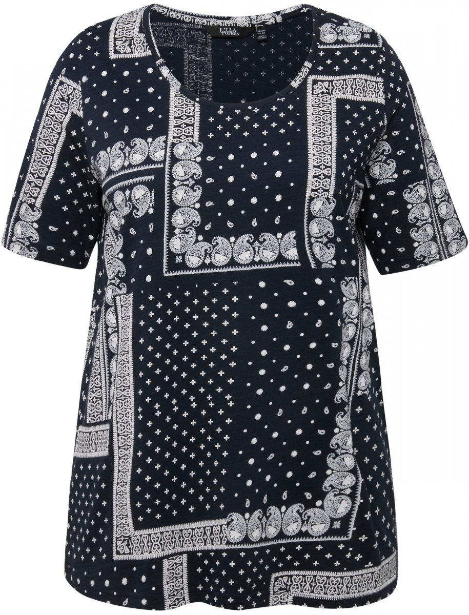 Dydžių vadovas - Ulla Popken Paisley A-Line Short Sleeve Tee Navy Blue