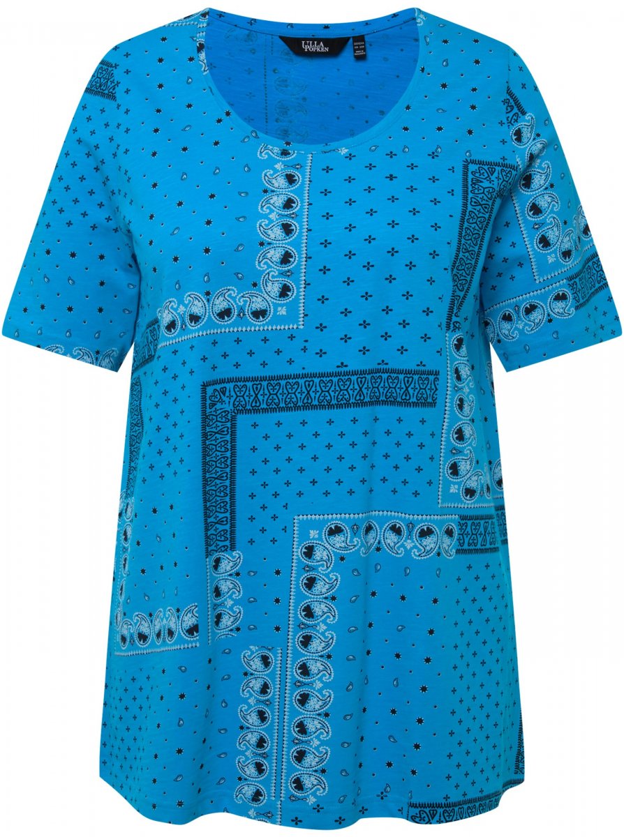 Dydžių vadovas - Ulla Popken Paisley A-Line Short Sleeve Tee Sapphire Blue