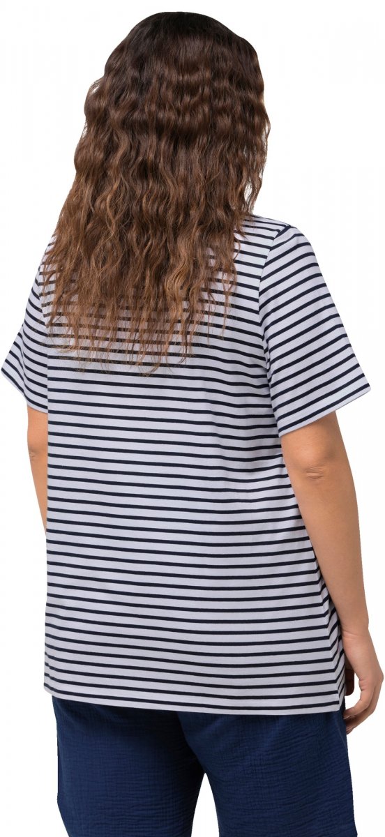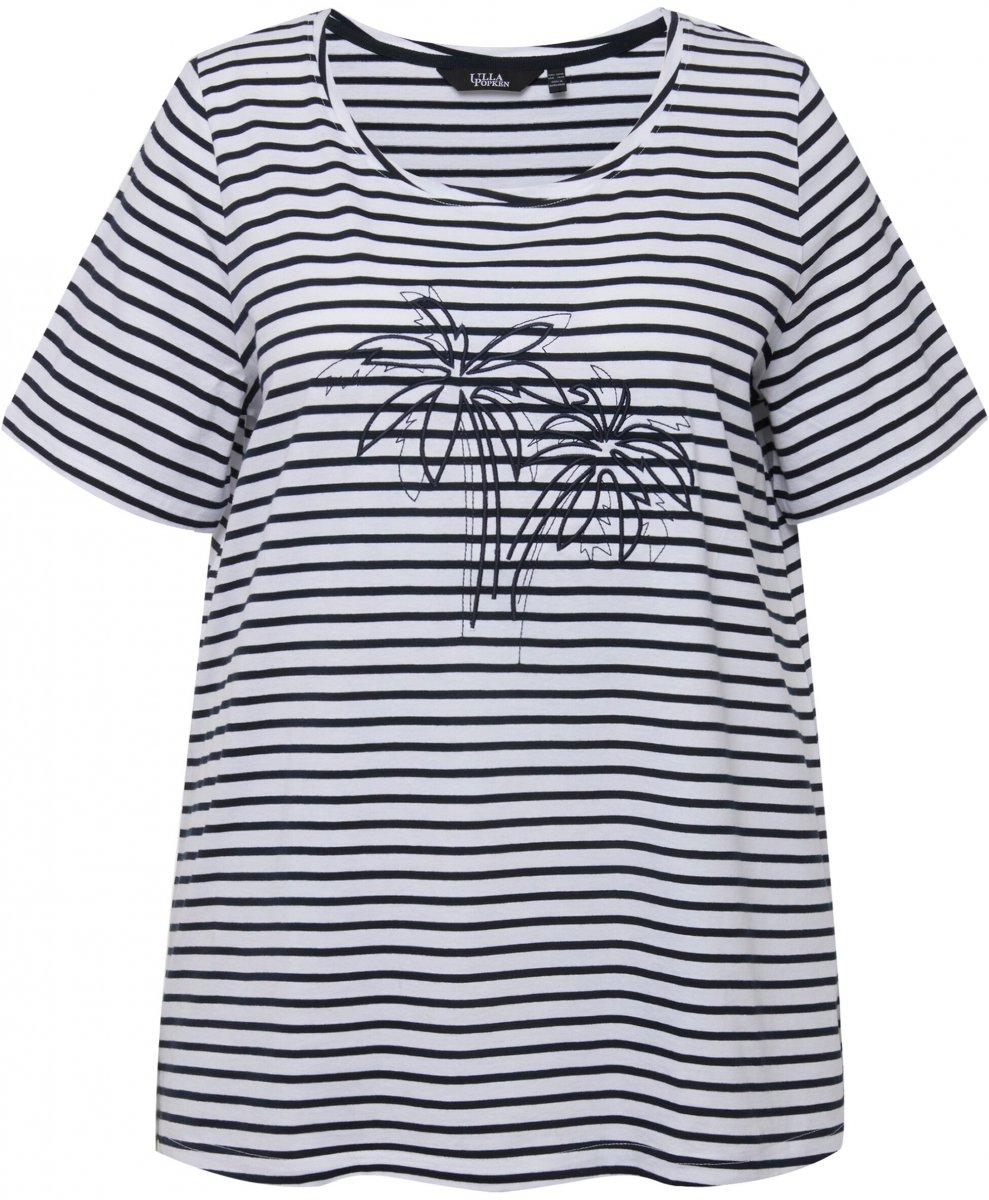 Dydžių vadovas - Ulla Popken Palm Tree Embroidered Tee Navy Blue
