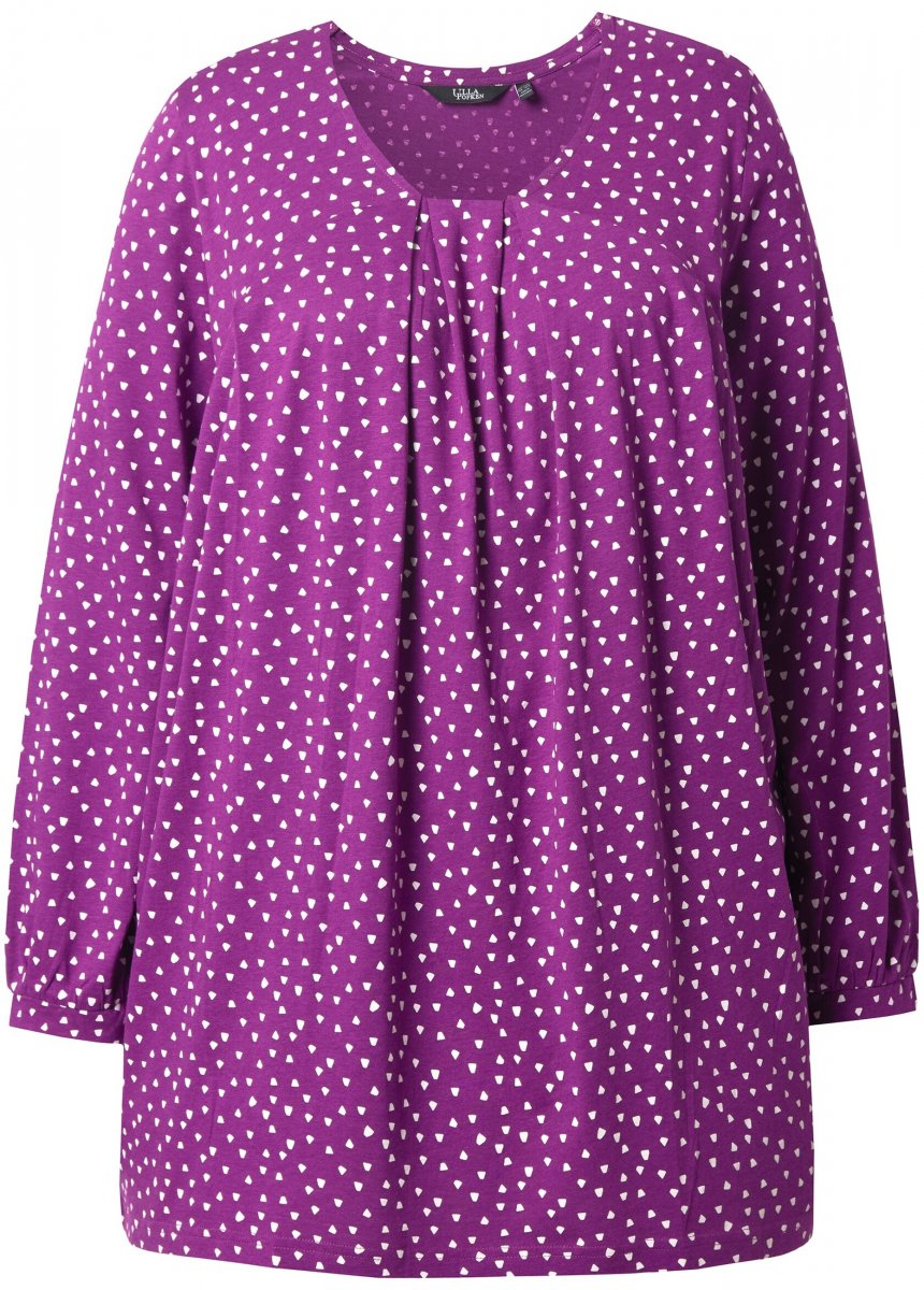 Dydžių vadovas - Ulla Popken Pleated Confetti Print Long Sleeve Tee Light Plum