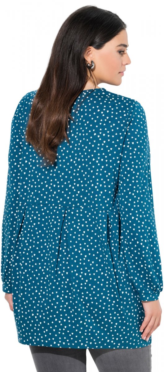Dydžių vadovas - Ulla Popken Pleated Confetti Print Long Sleeve Tee Teal