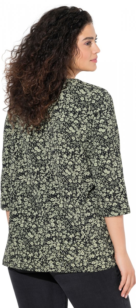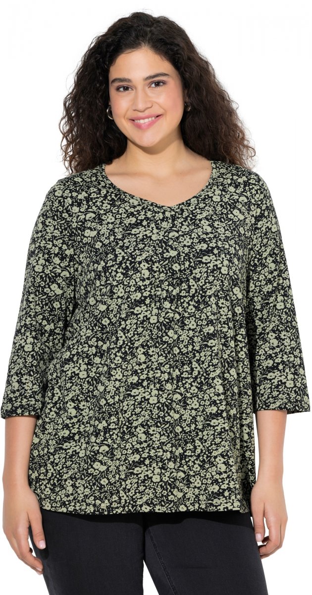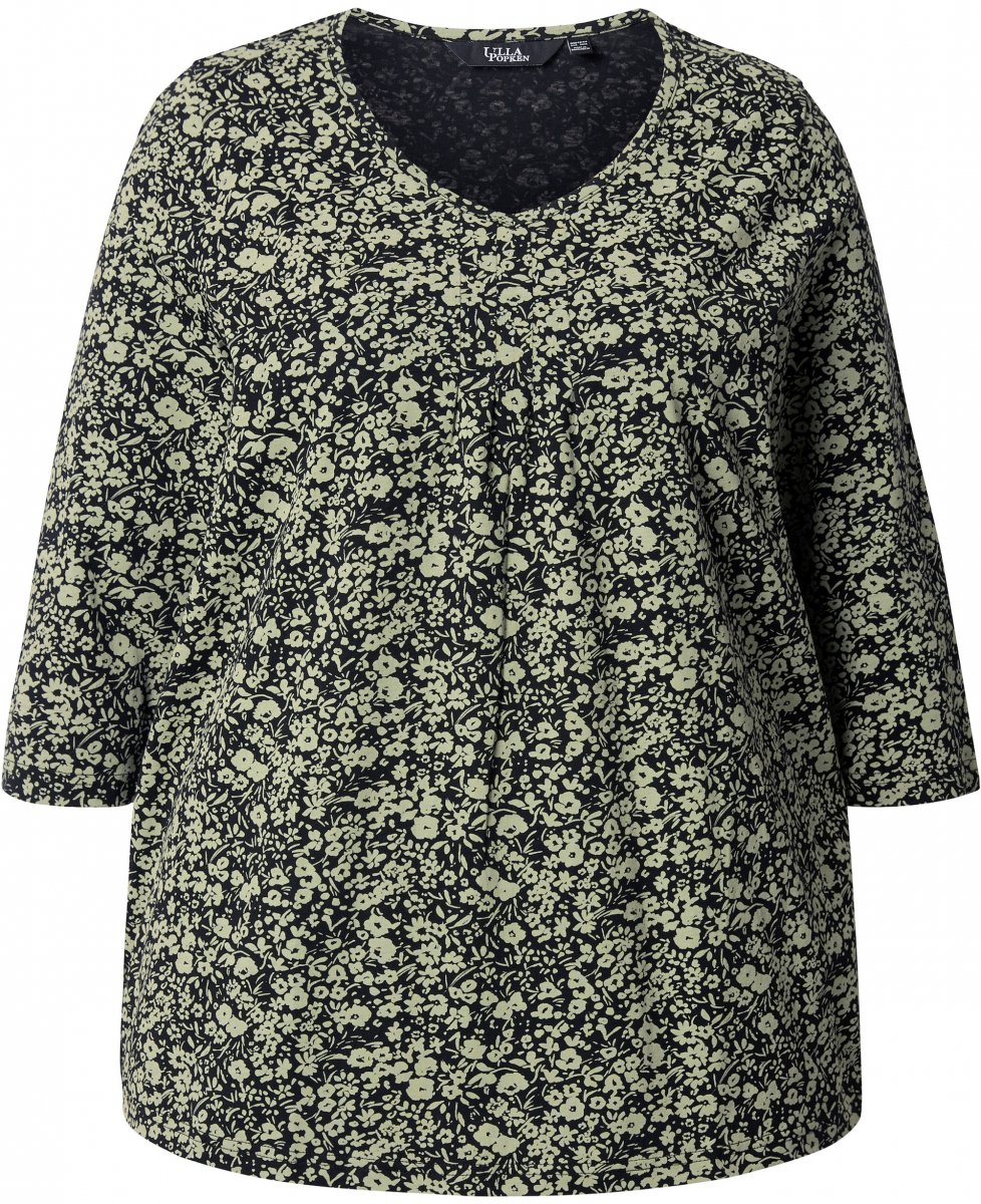 Dydžių vadovas - Ulla Popken Pleated Floral Print 3/4 Sleeve Tee Pond Green