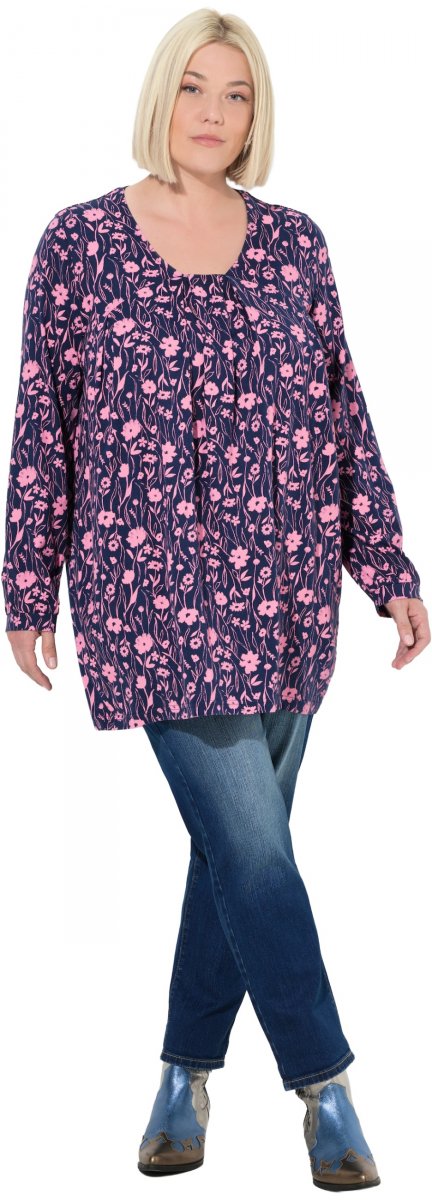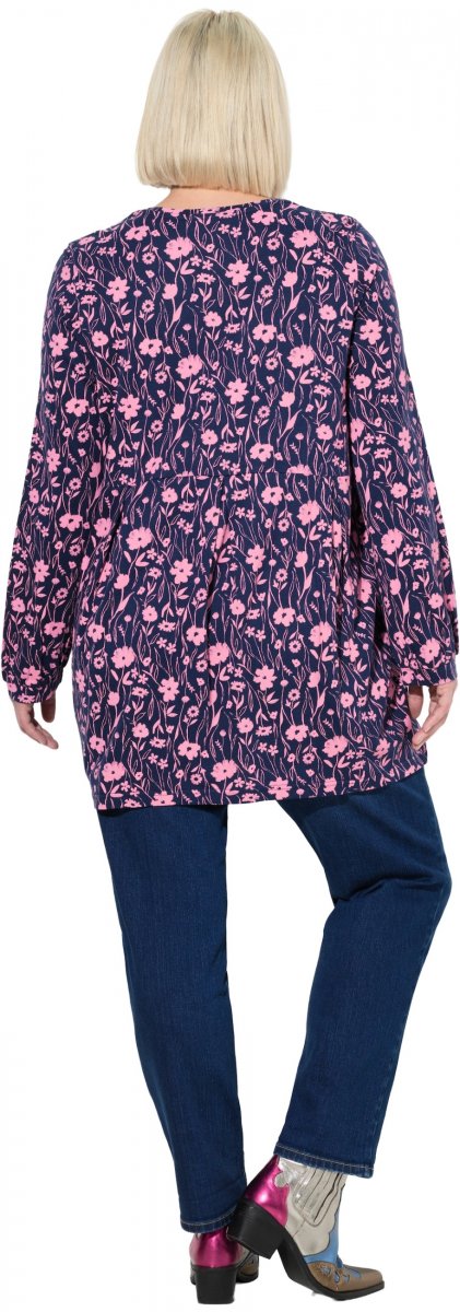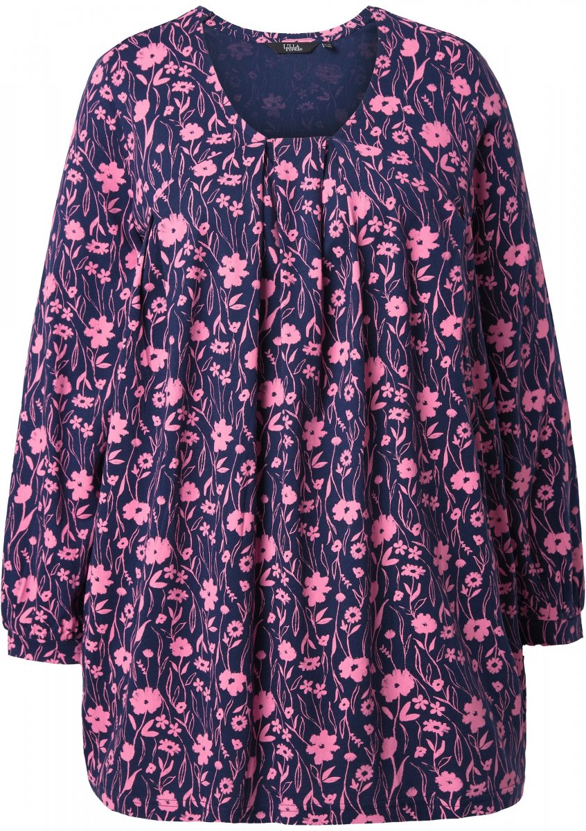 Dydžių vadovas - Ulla Popken Pleated Long Sleeve Floral Knit Tunic Ink Blue