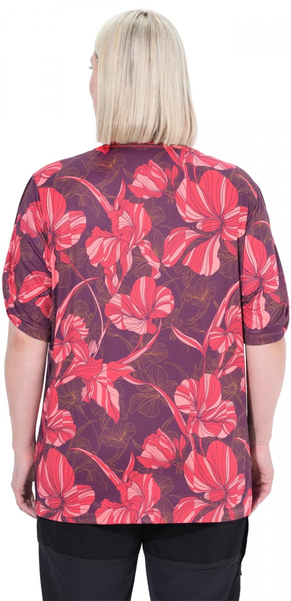 Dydžių vadovas - Ulla Popken Quick Drying Flower Print Short Sleeve Tee Dark Cherry