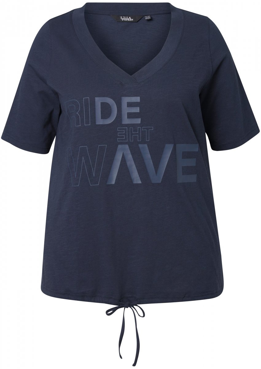 Dydžių vadovas - Ulla Popken Ride The Wave Short Sleeve V-Neck Graphic Tee Navy Blue
