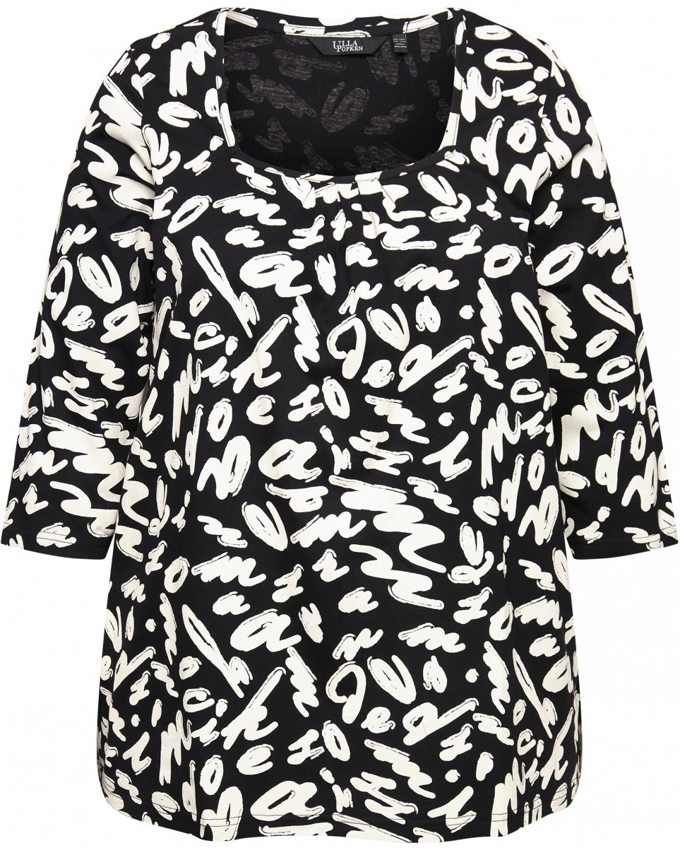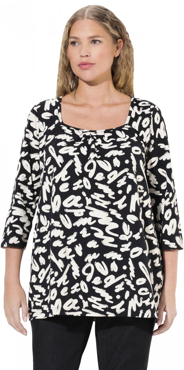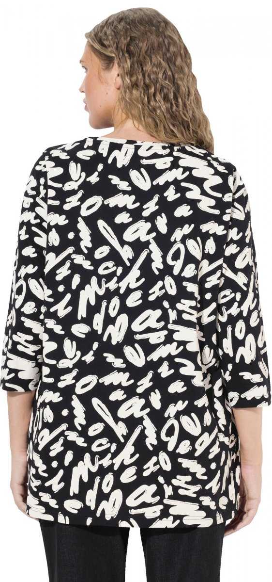 Dydžių vadovas - Ulla Popken Scribble Print Square Neck 3/4 Sleeve Tee Black