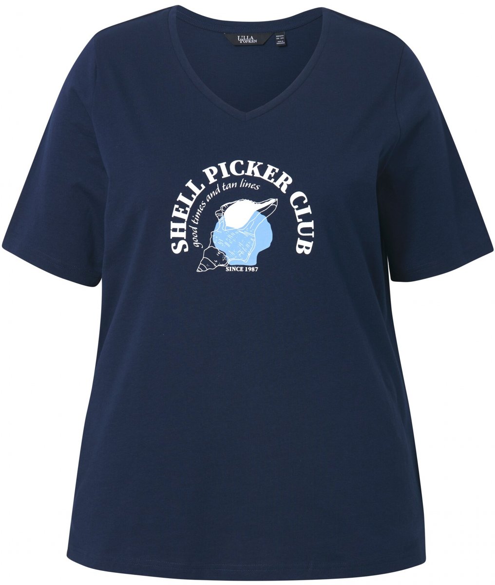 Dydžių vadovas - Ulla Popken Shell Picker Club Short Sleeve Graphic Tee Navy