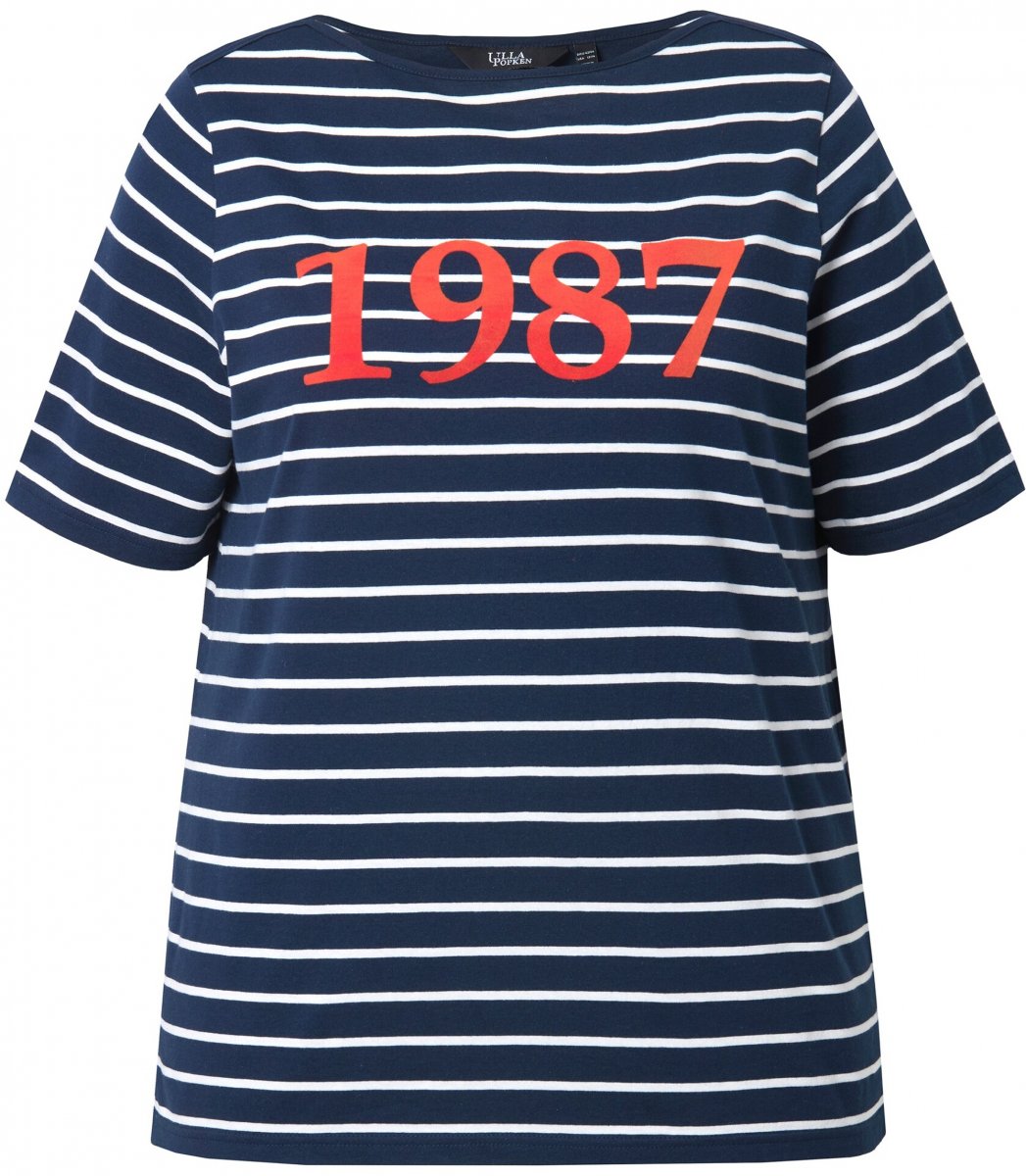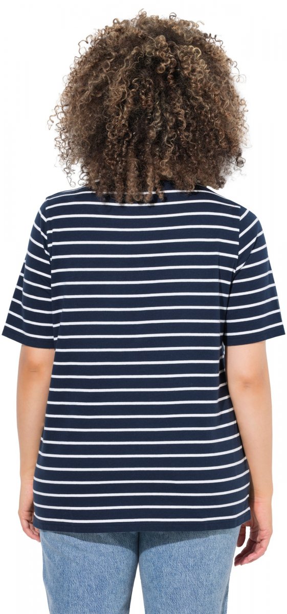 Dydžių vadovas - Ulla Popken Striped 1987 Boat Neck Tee Navy Blue
