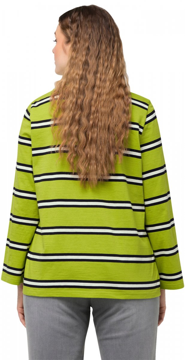 Dydžių vadovas - Ulla Popken Striped Hem Long Sleeve Tee Apple Green