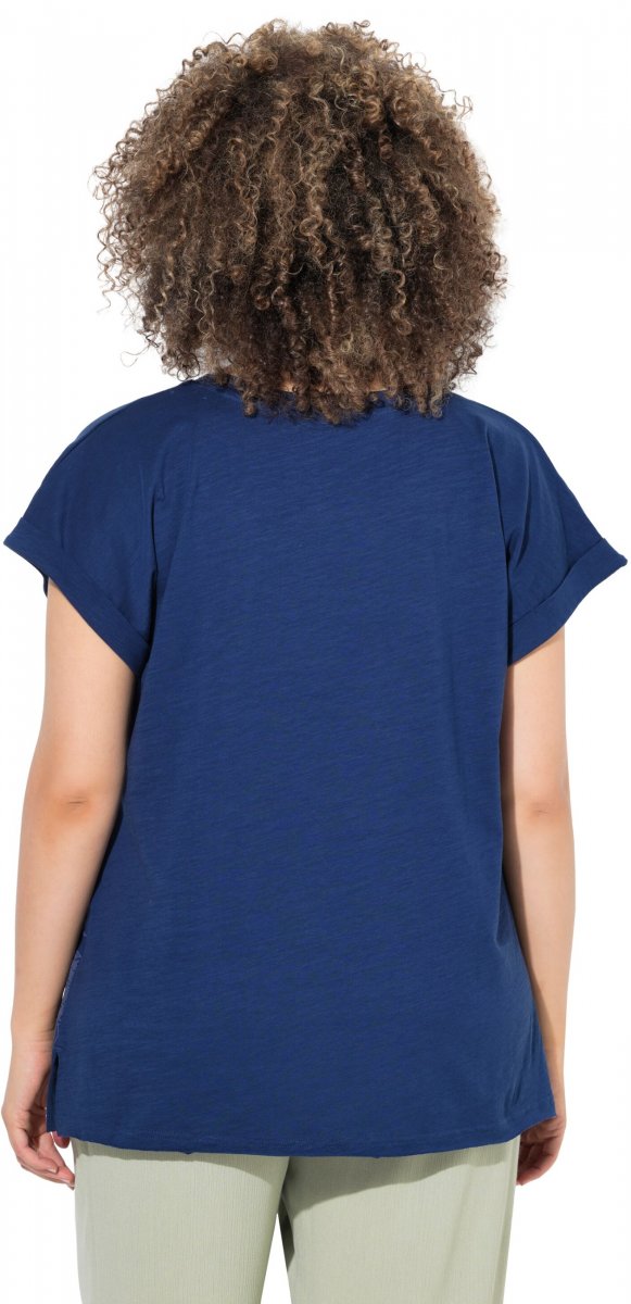 Dydžių vadovas - Ulla Popken Textured Paisley Motif Cap Sleeve Tee Navy