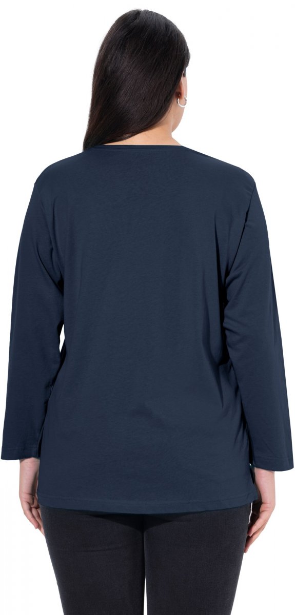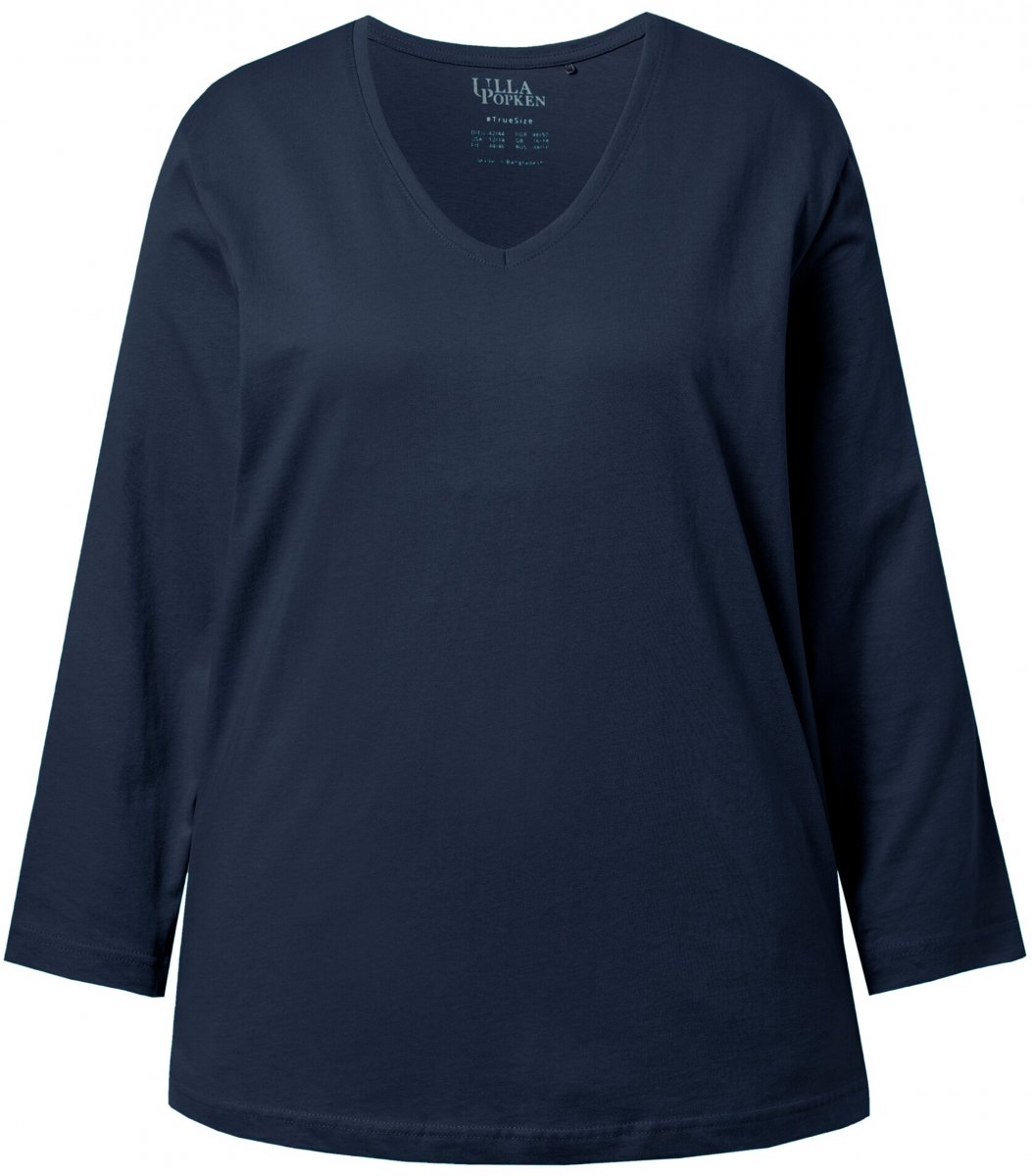 Dydžių vadovas - Ulla Popken Back To Basics V-Neck Relaxed Fit Cotton Tee Navy Blue