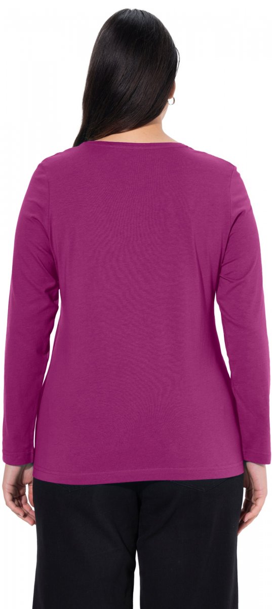 Ulla Popken Basic Round Neck Long Sleeve Slim Fit Cotton Tee Berry