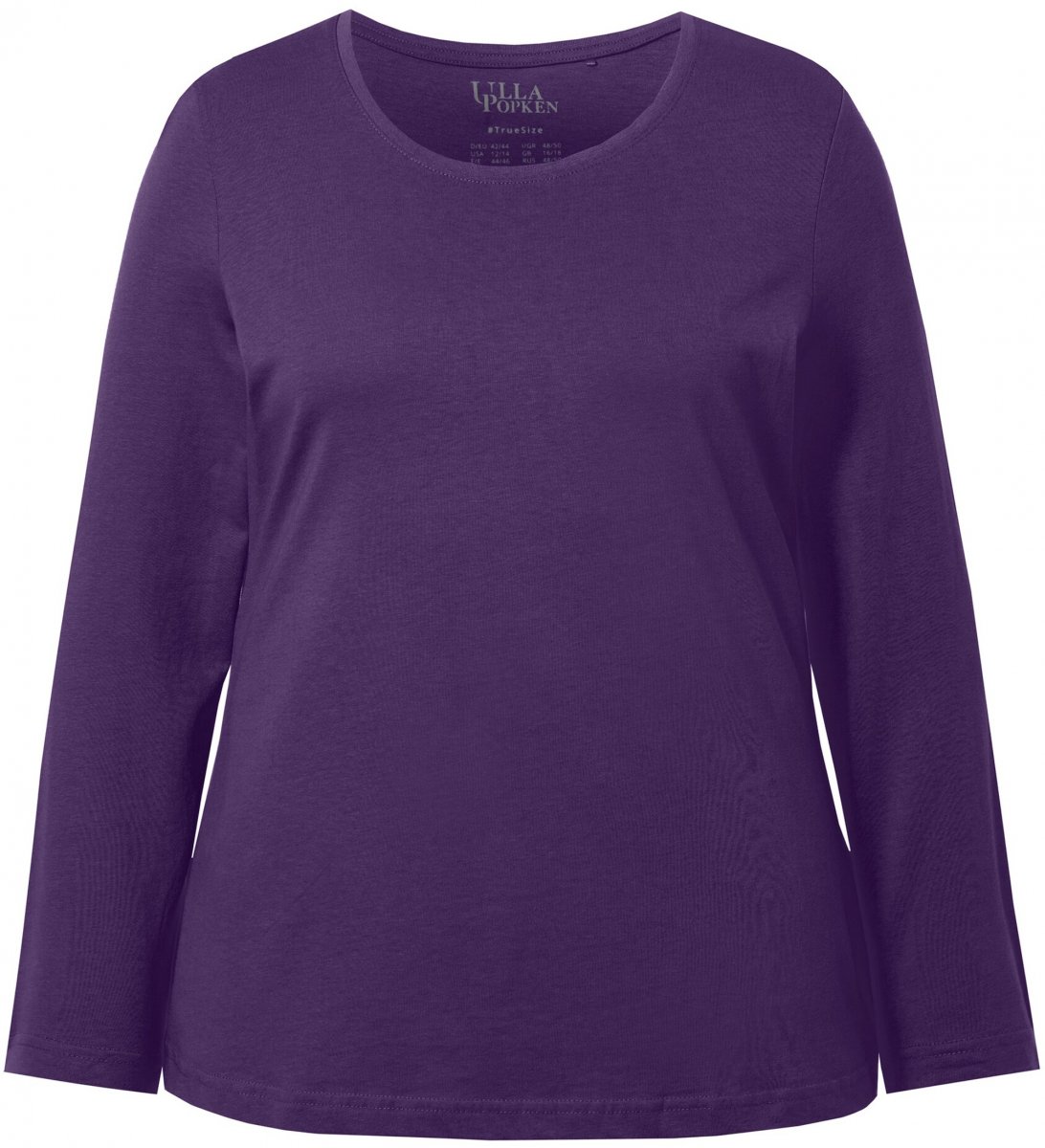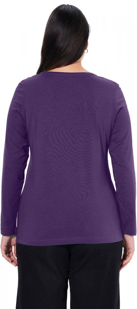 Ulla Popken Basic Round Neck Long Sleeve Slim Fit Cotton Tee Deep Violet