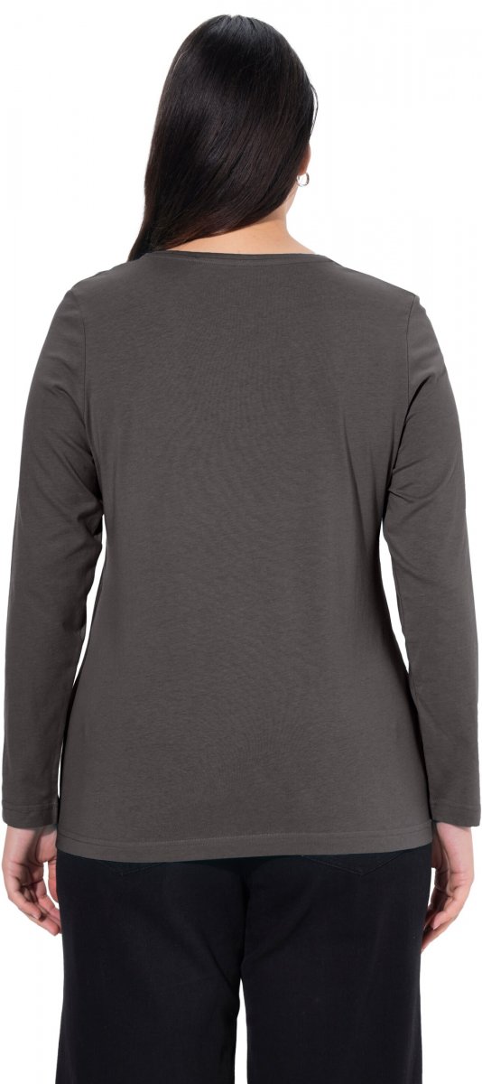 Ulla Popken Basic Round Neck Long Sleeve Slim Fit Cotton Tee Graphite Grey