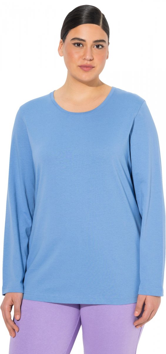 Ulla Popken Basic Round Neck Long Sleeve Slim Fit Cotton Tee Light Cornflower