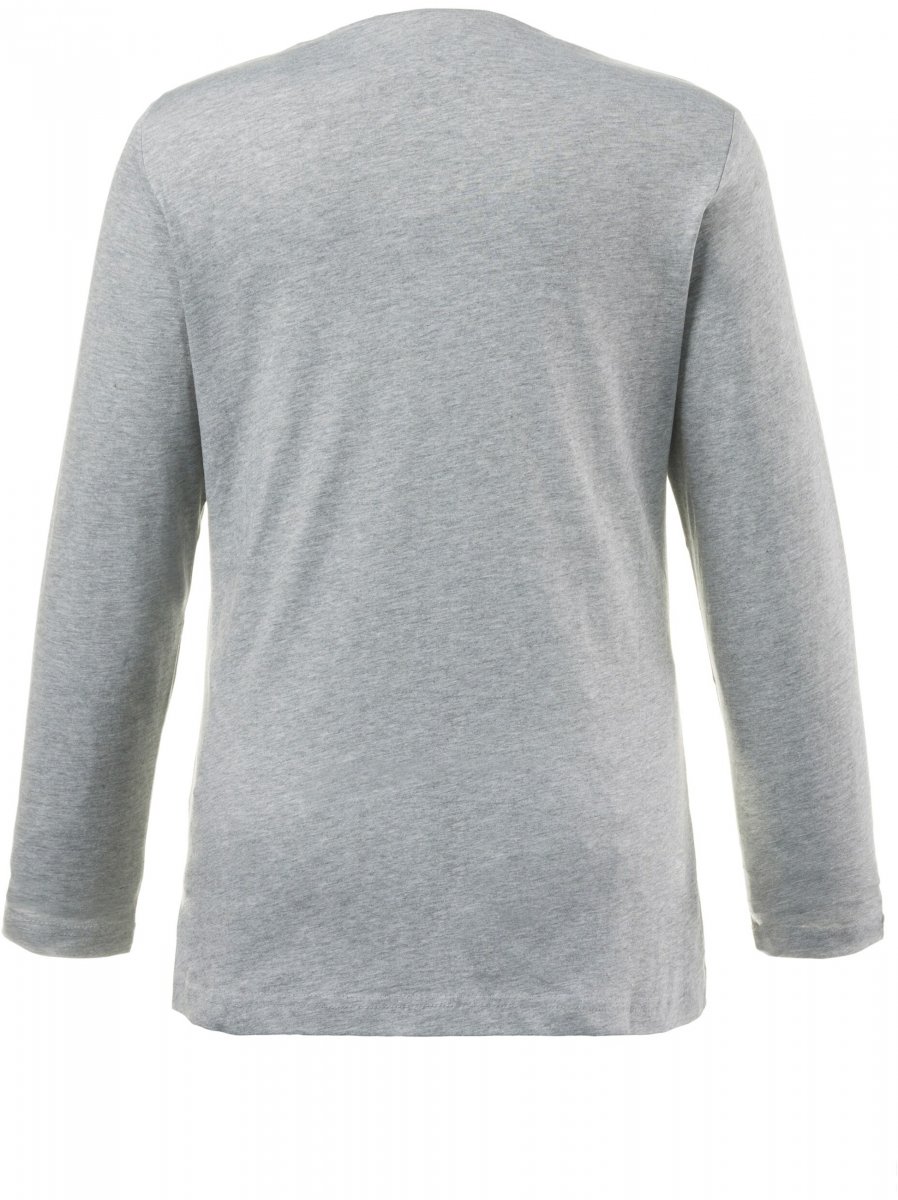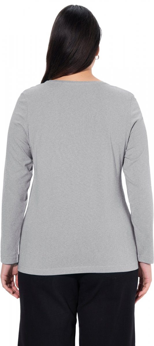 Ulla Popken Basic Round Neck Long Sleeve Slim Fit Cotton Tee Light Grey Melange