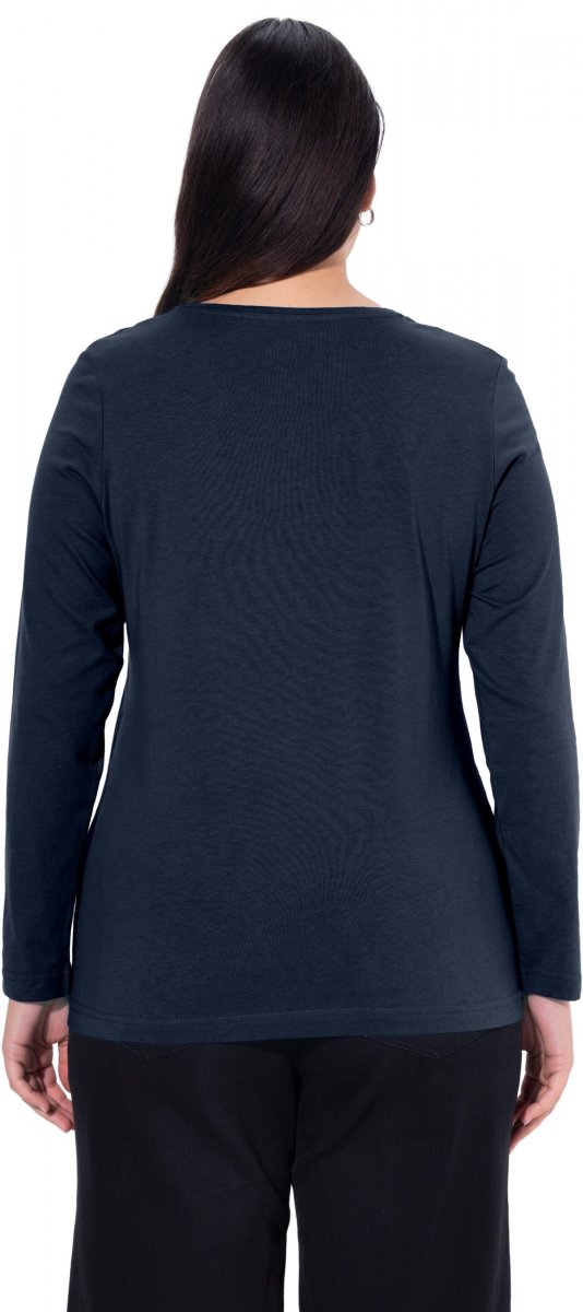 Dydžių vadovas - Ulla Popken Basic Round Neck Long Sleeve Slim Fit Cotton Tee Navy Blue