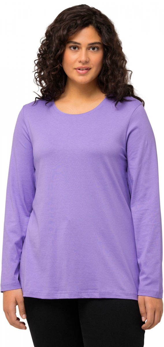 Ulla Popken Basic Round Neck Long Sleeve Slim Fit Cotton Tee Pale Lilac