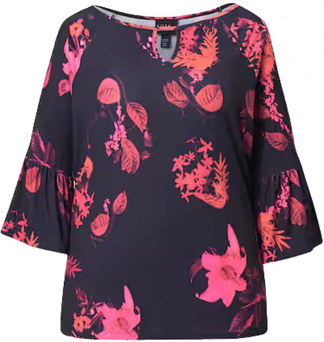 Dydžių vadovas - Ulla Popken Botanical Print Cold Shoulder Top Black