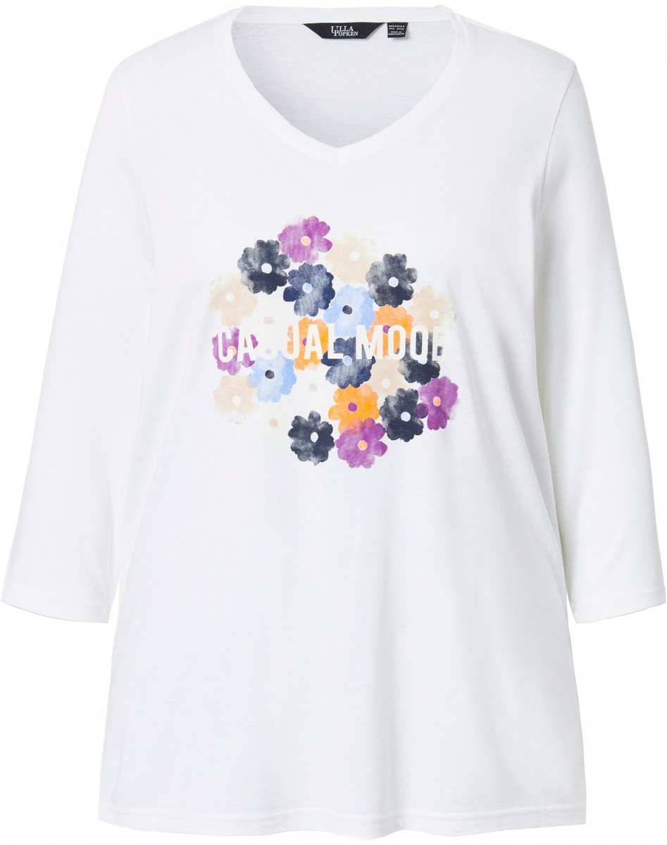 Dydžių vadovas - Ulla Popken Casual Mood Floral V-Neck Tee Off-White
