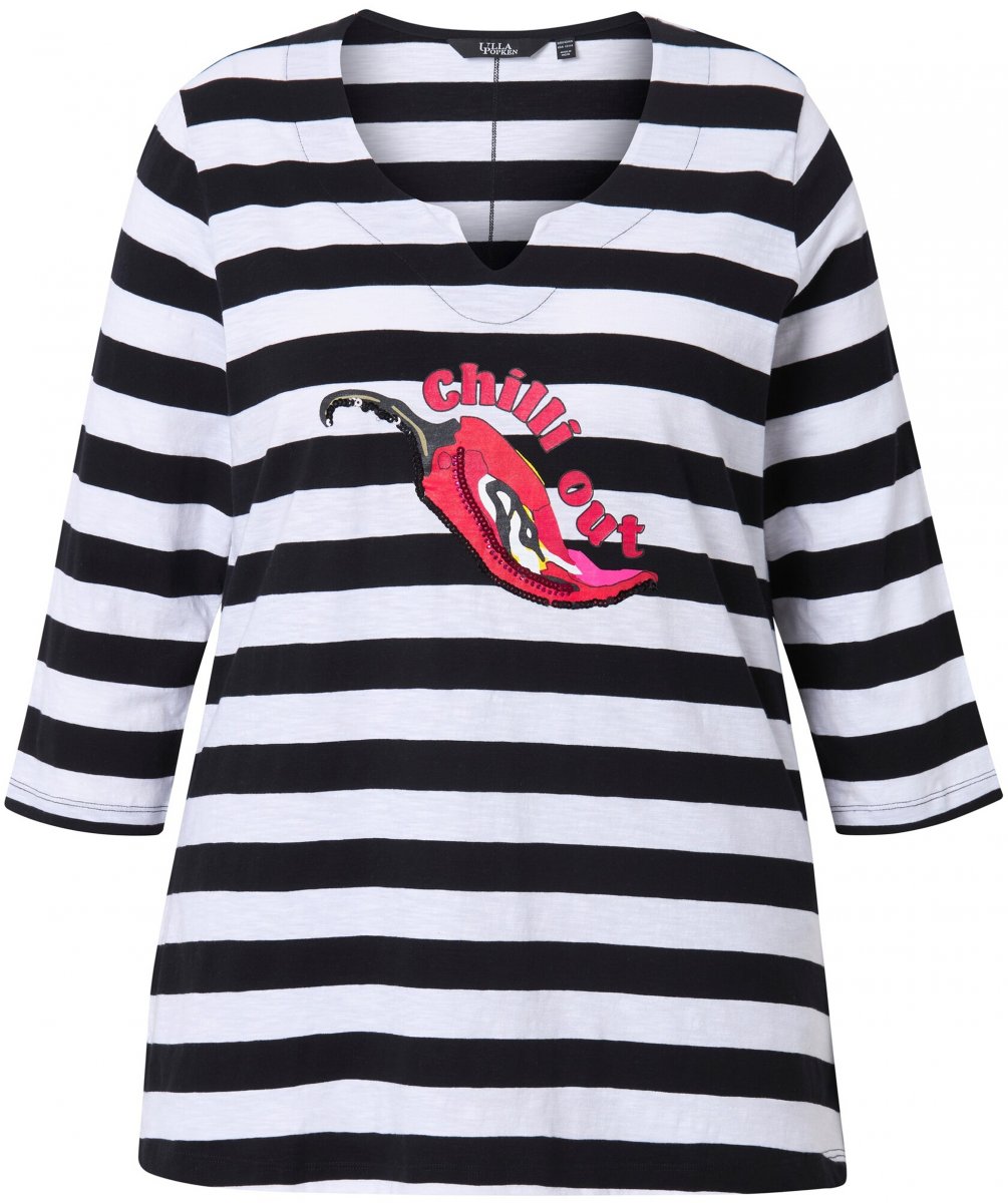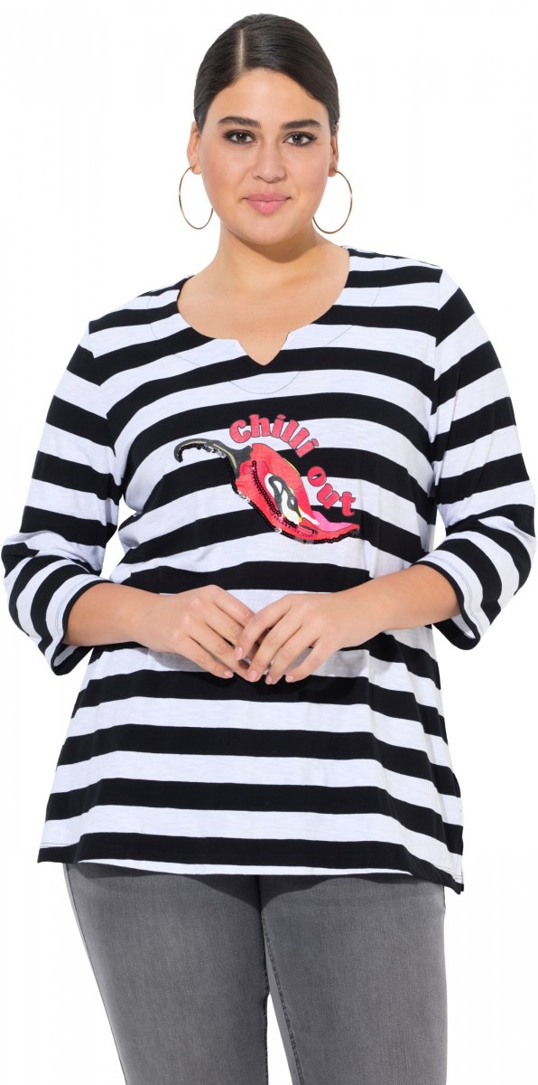 Dydžių vadovas - Ulla Popken Chilli Pepper Sequined 3/4 Sleeve Graphic Tee Black