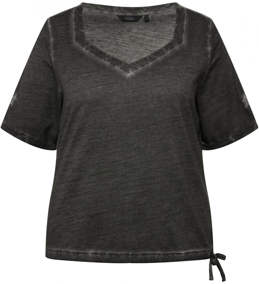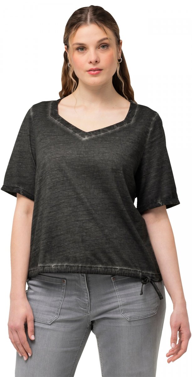 Dydžių vadovas - Ulla Popken Cold Dyed Sweetheart Neckline Short Sleeve Tee Graphite Grey