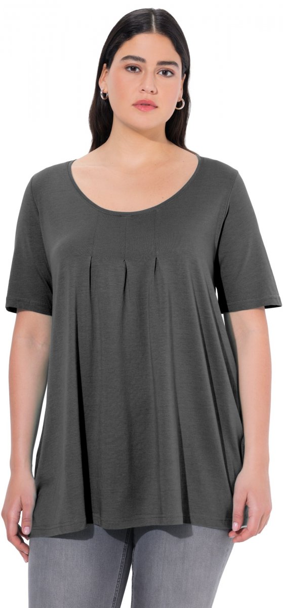Dydžių vadovas - Ulla Popken Essential Front Pleat Tee Graphite Grey